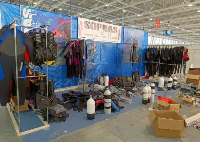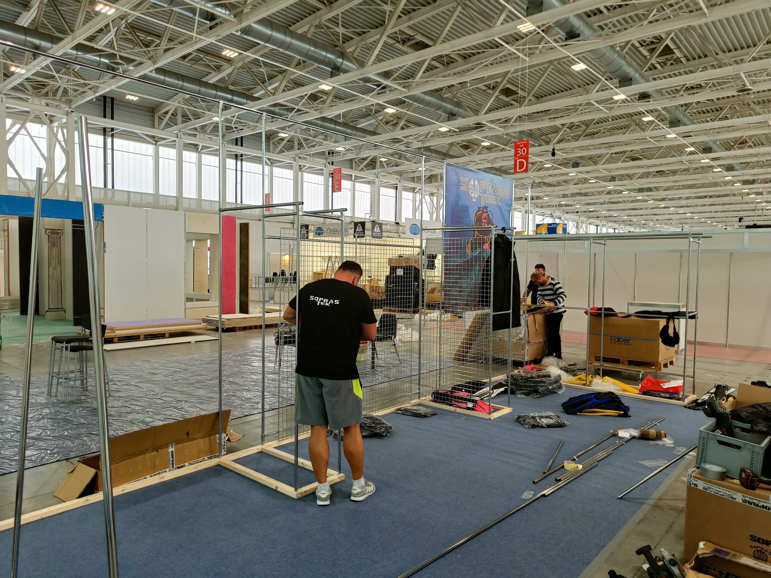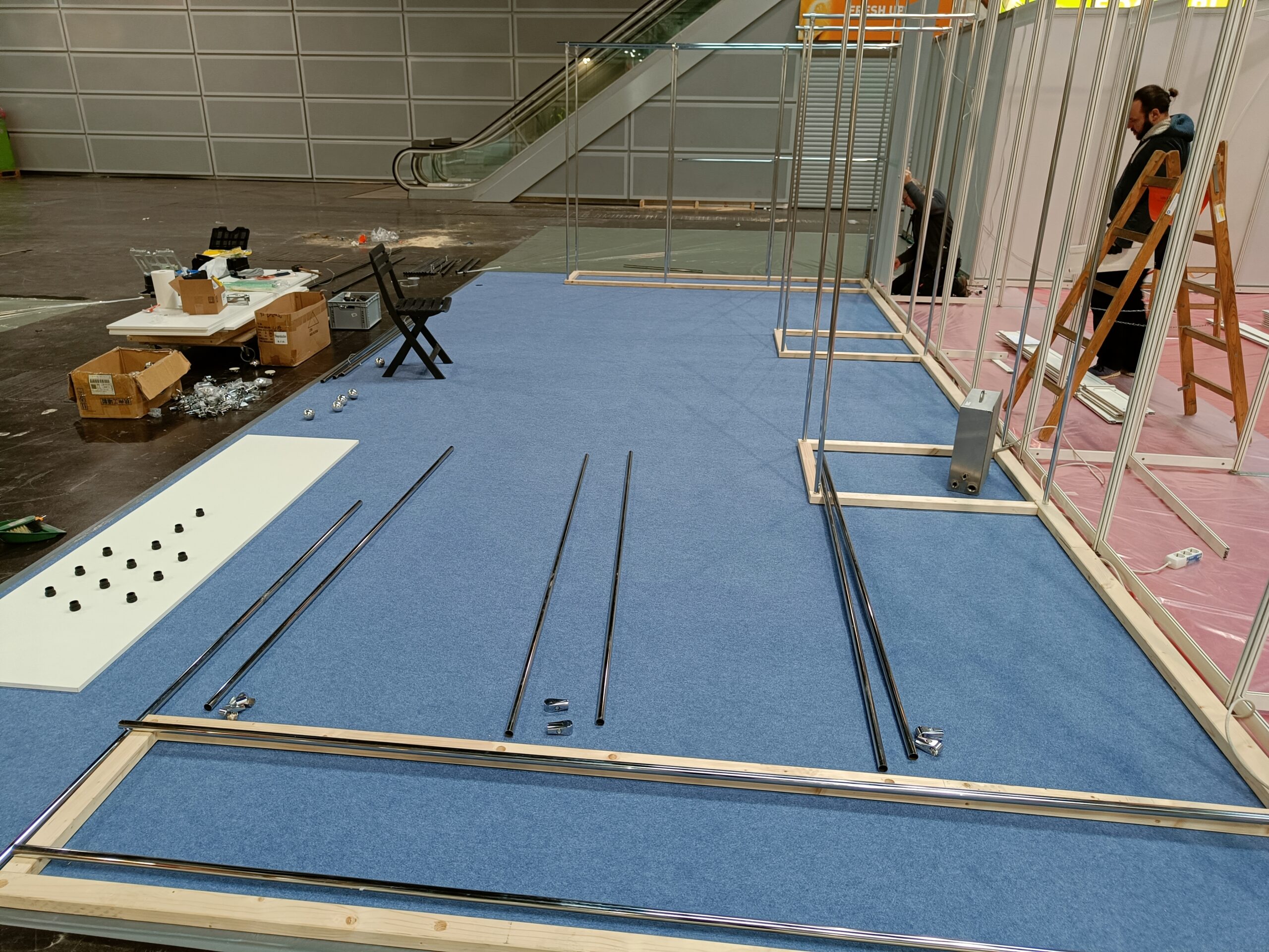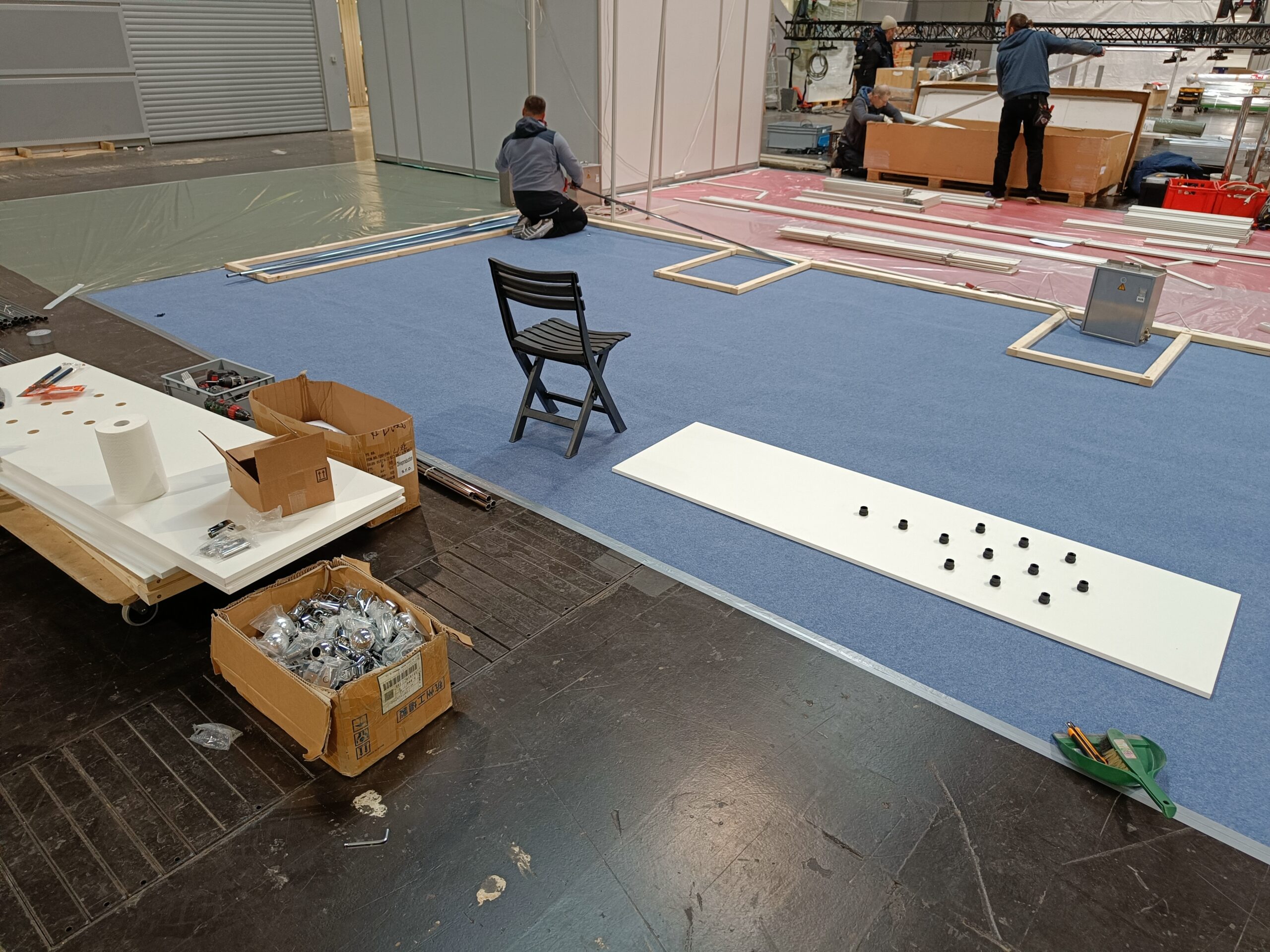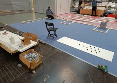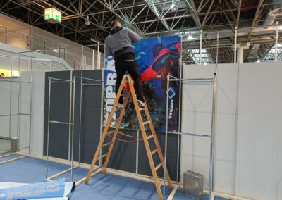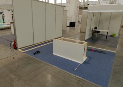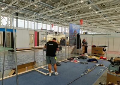 Stavba stánku na veletrh, včetně umístění zboží.