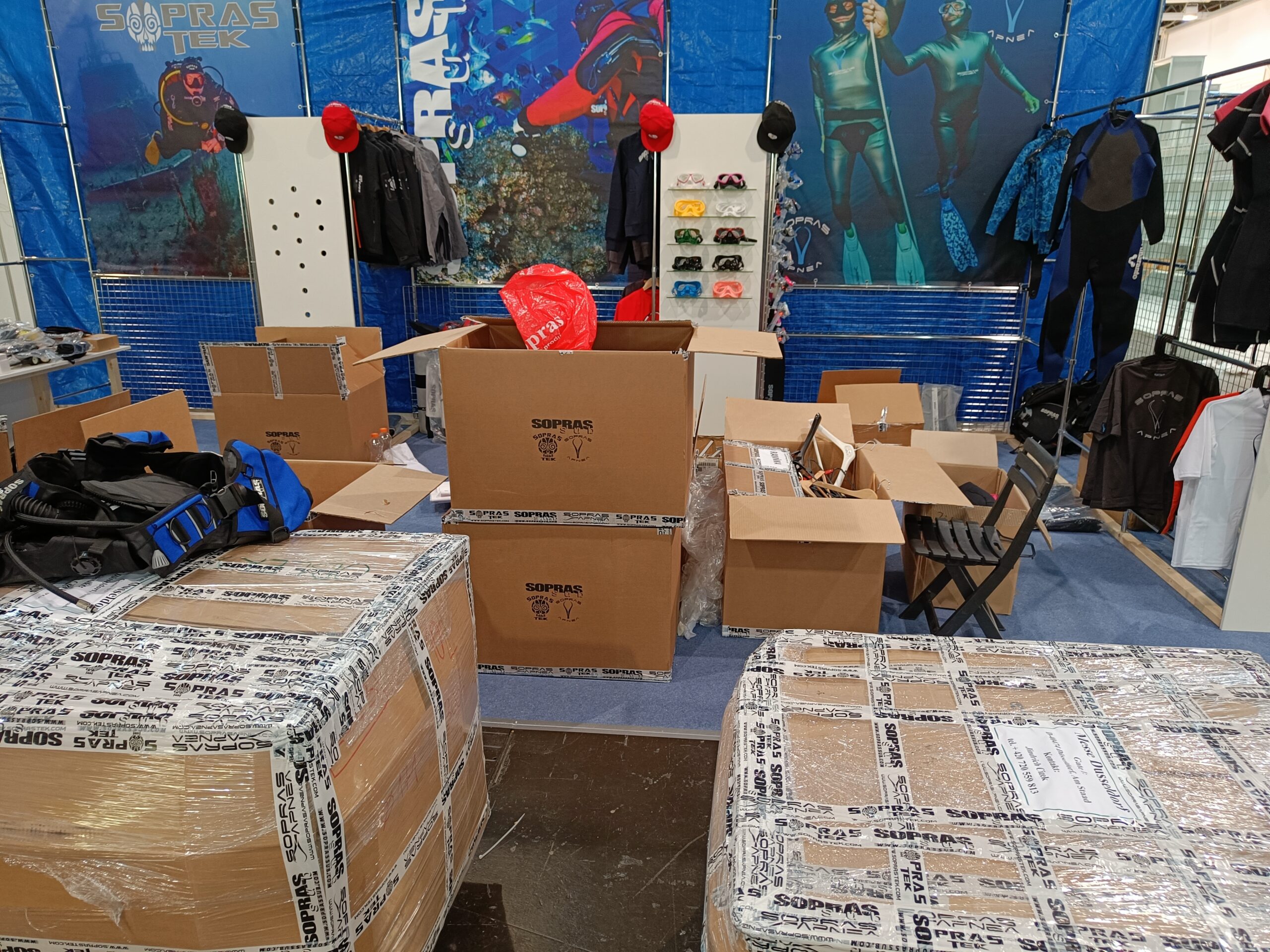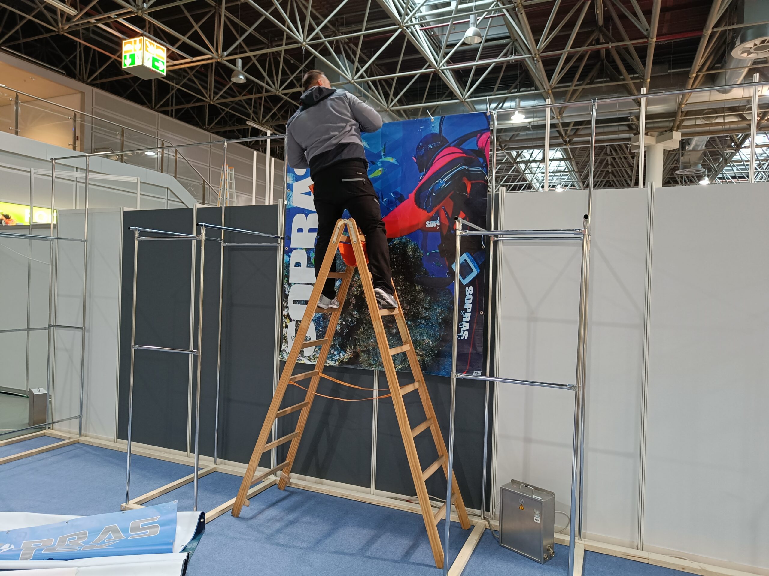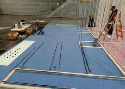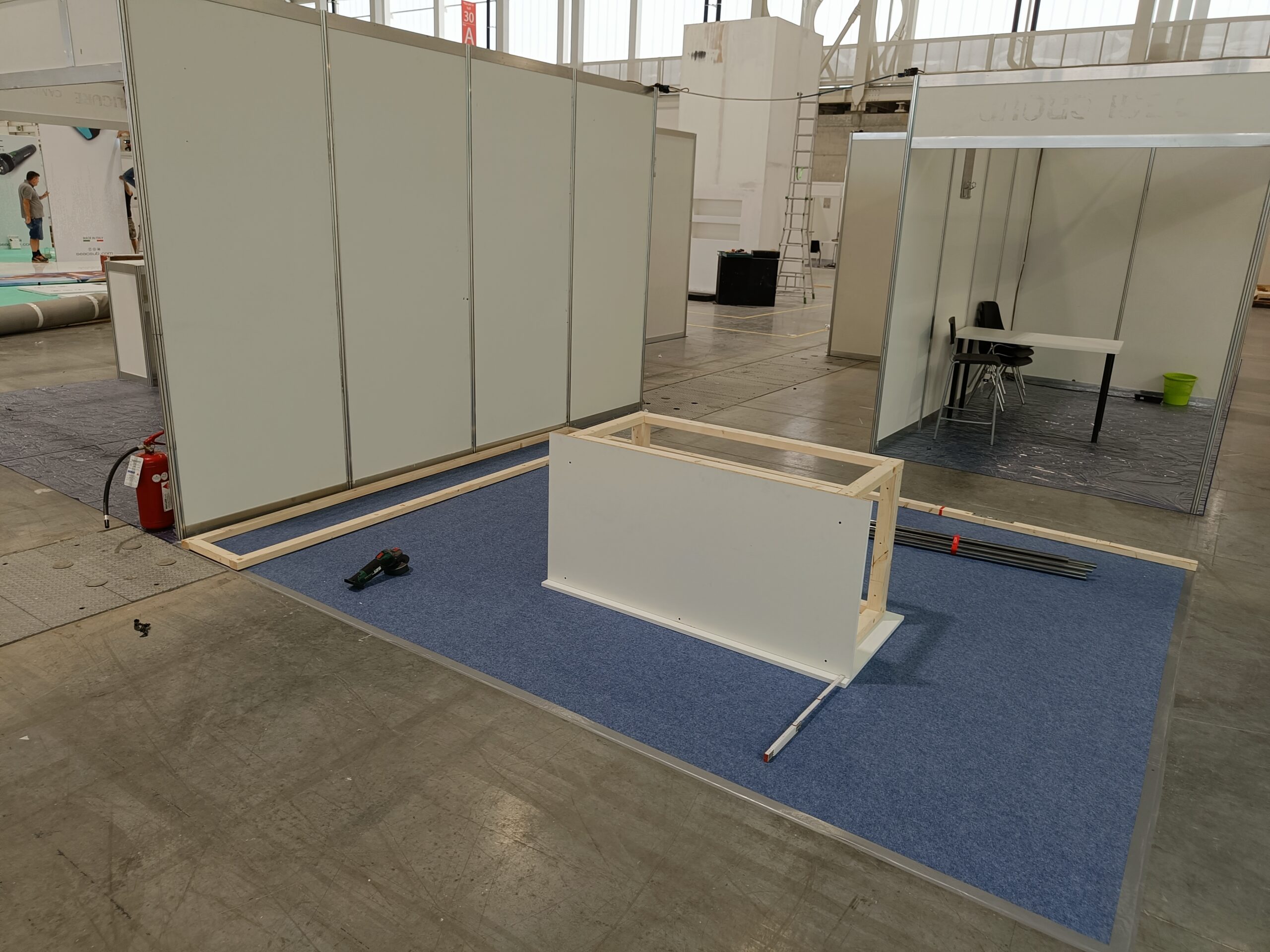 Stavba stánku na veletrh, včetně umístění zboží.