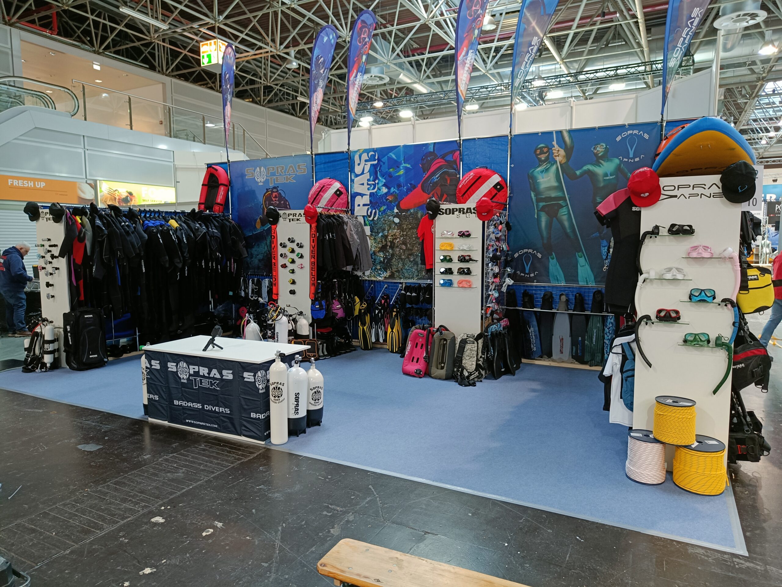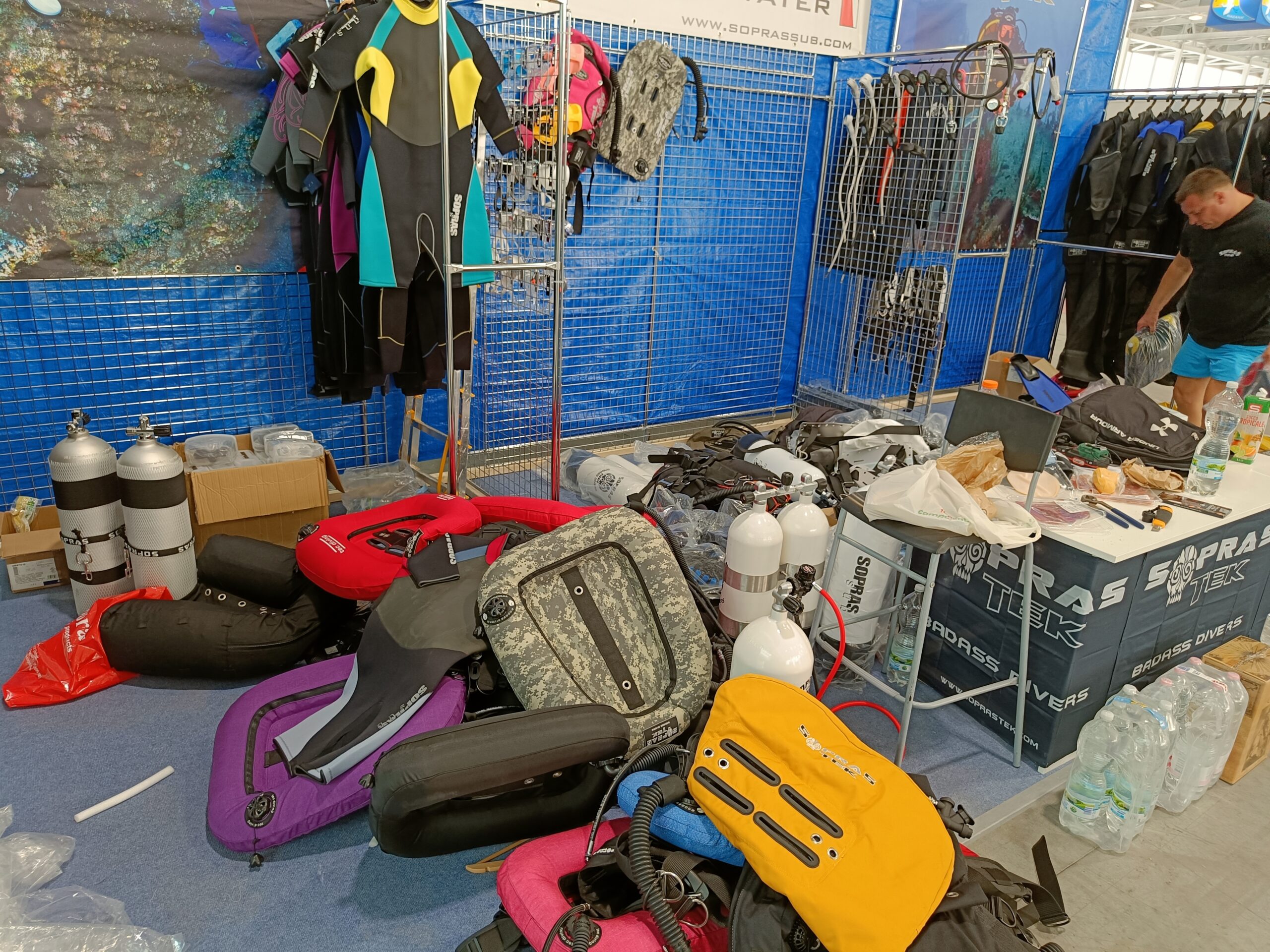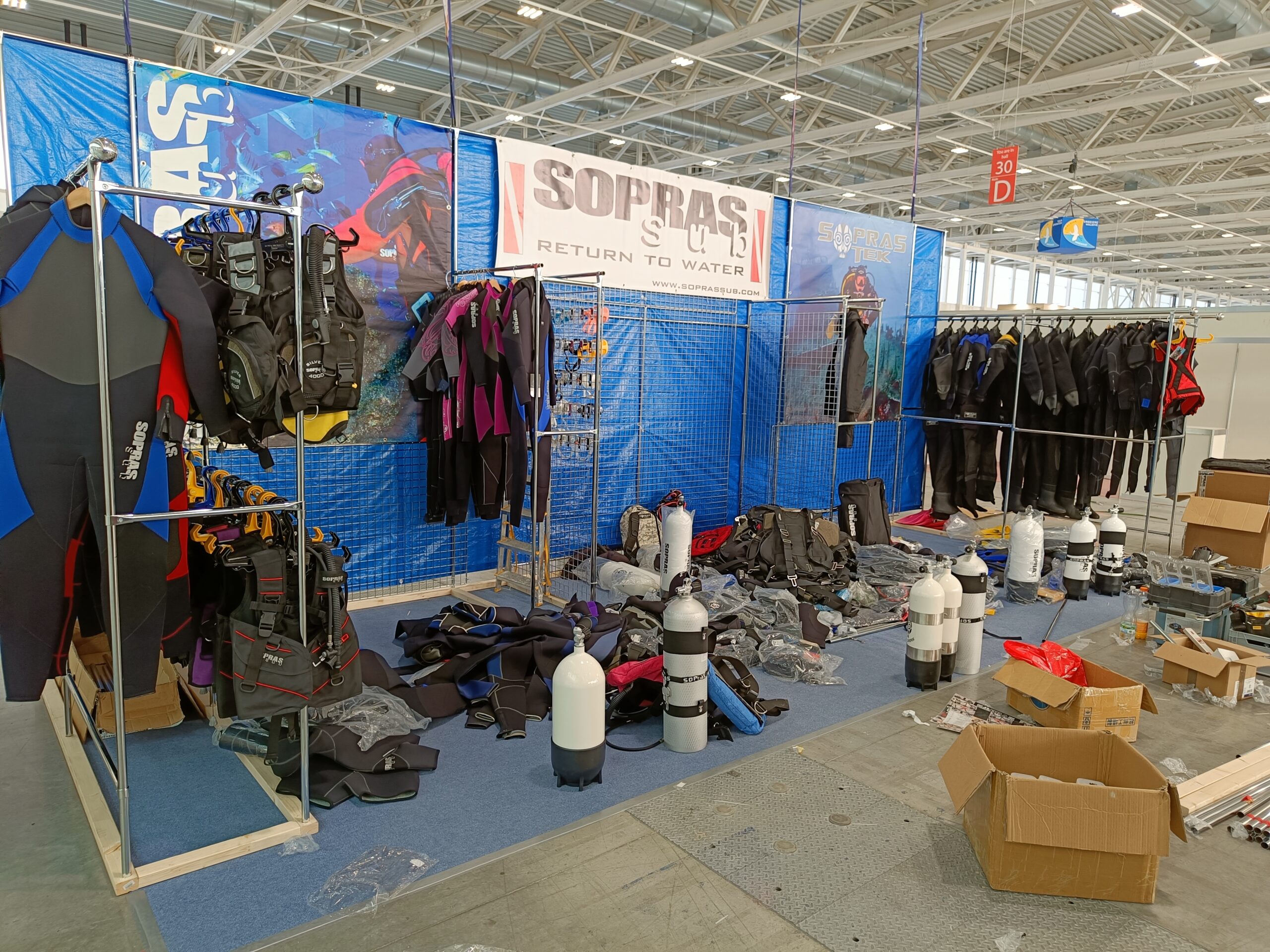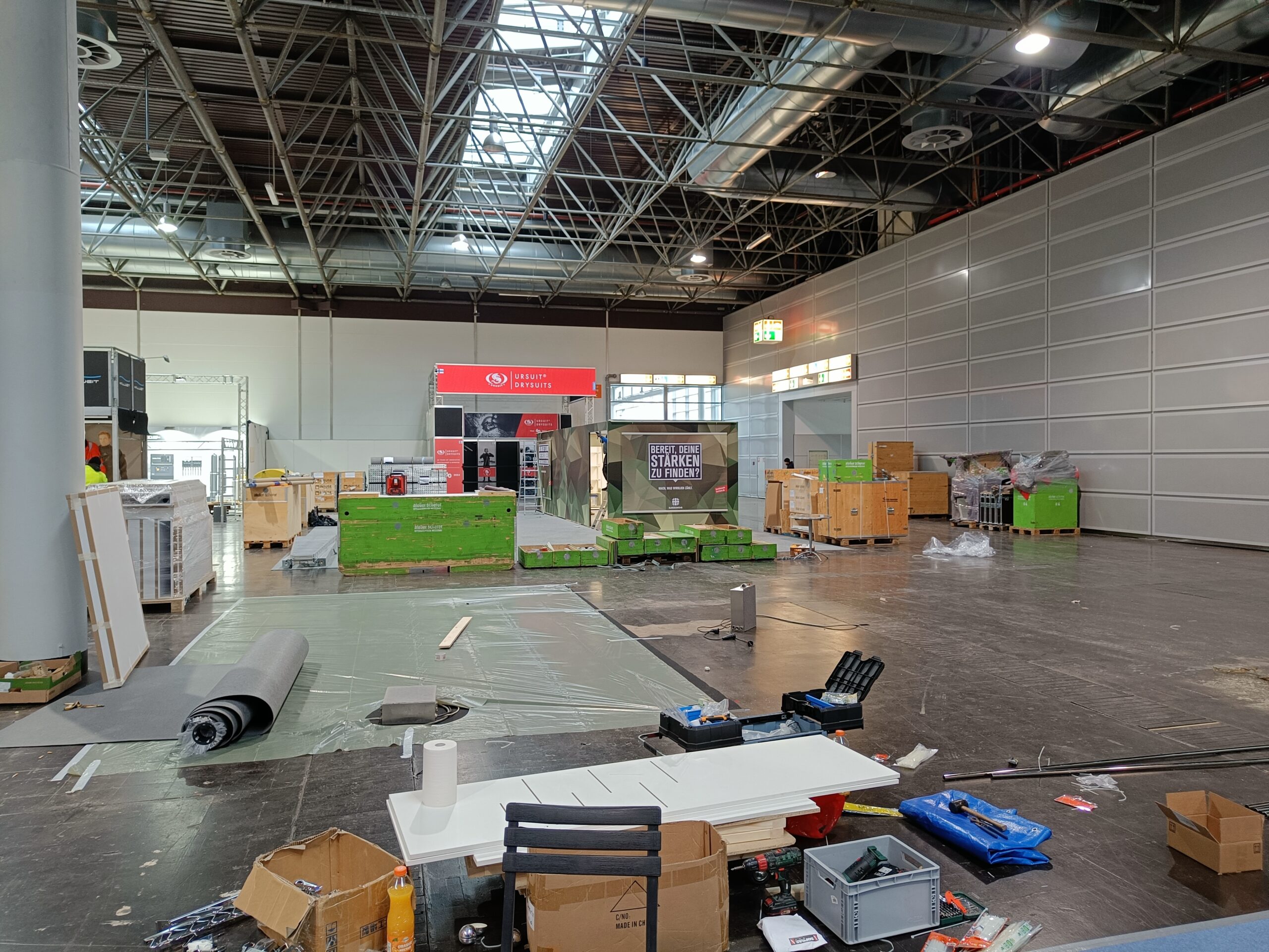Stavba stánku na veletrh, včetně umístění zboží.