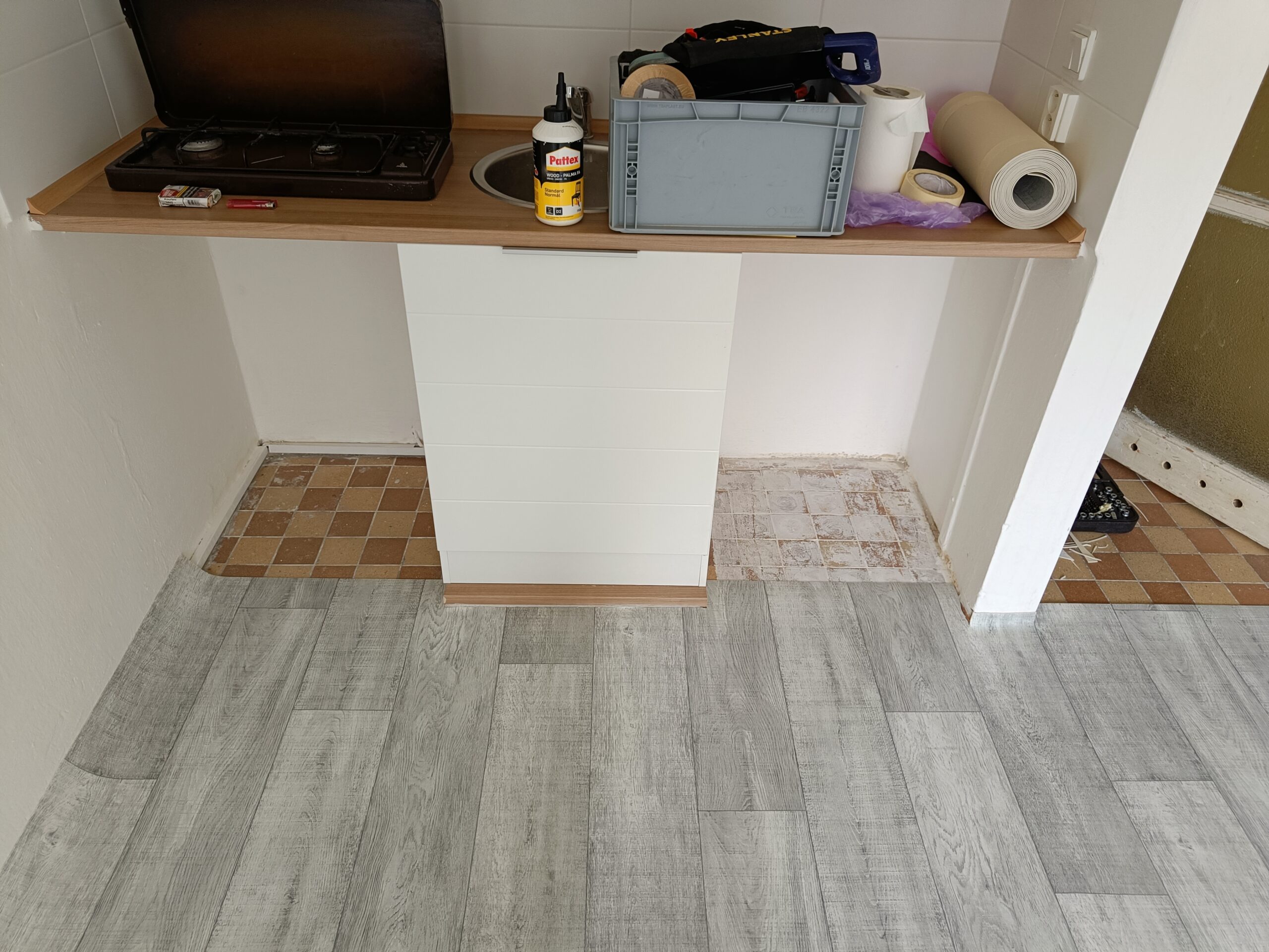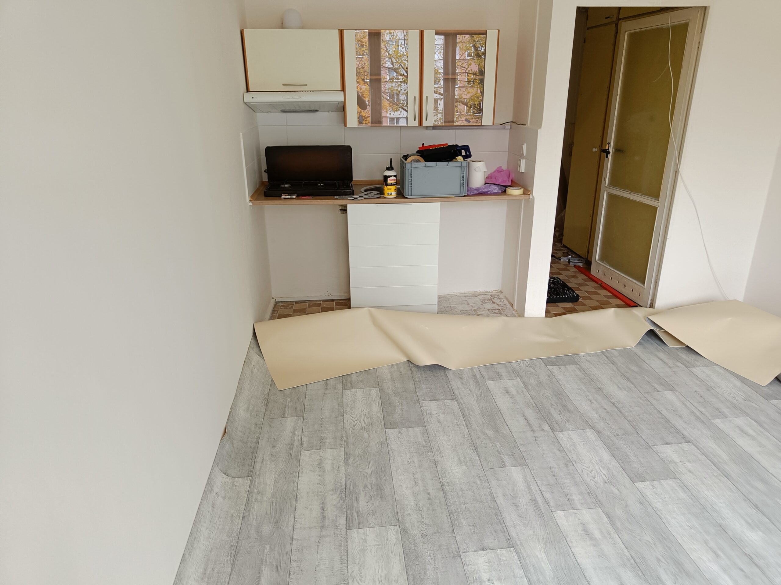 Pokládka laminátové podlahy.