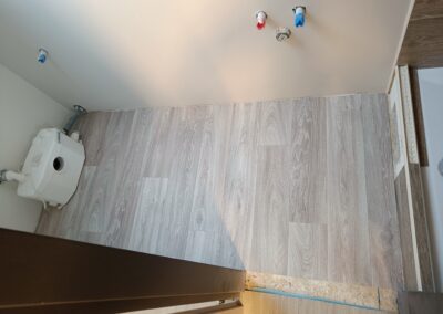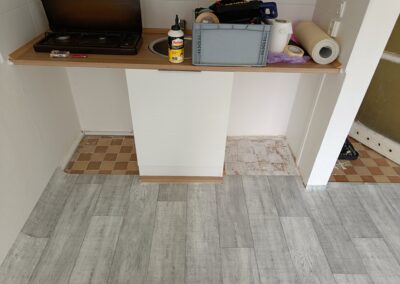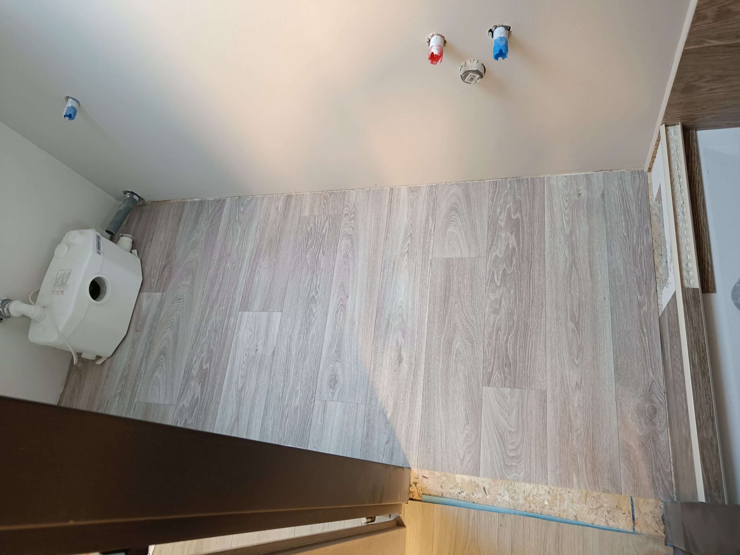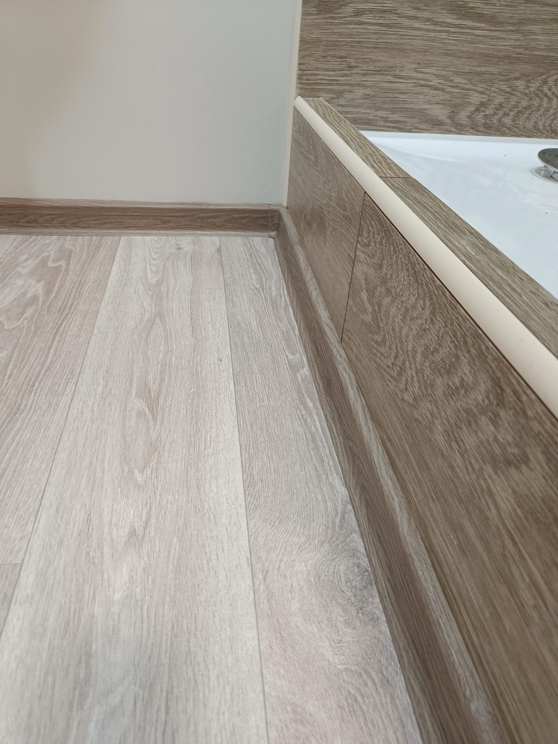 Pokládka lina bez lepení s vysokým okrajem.