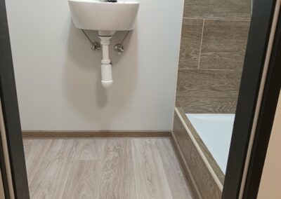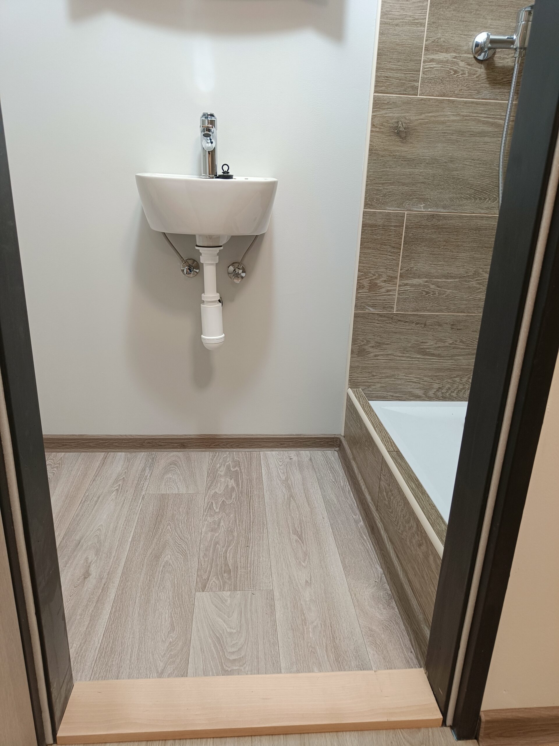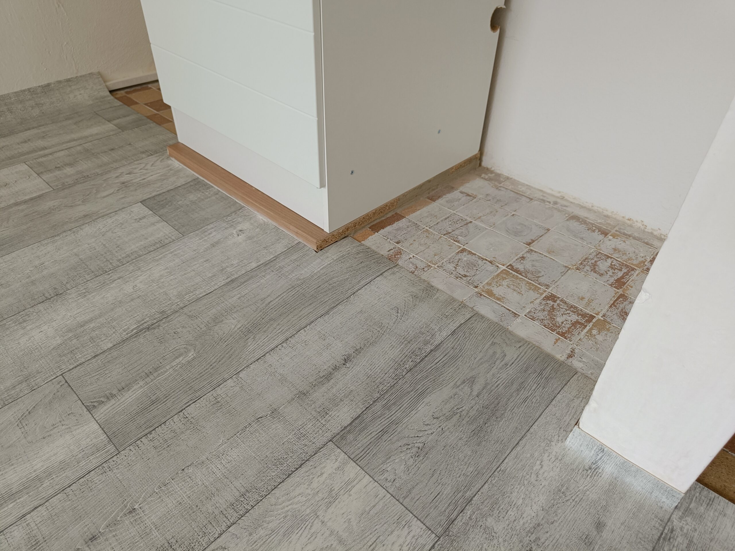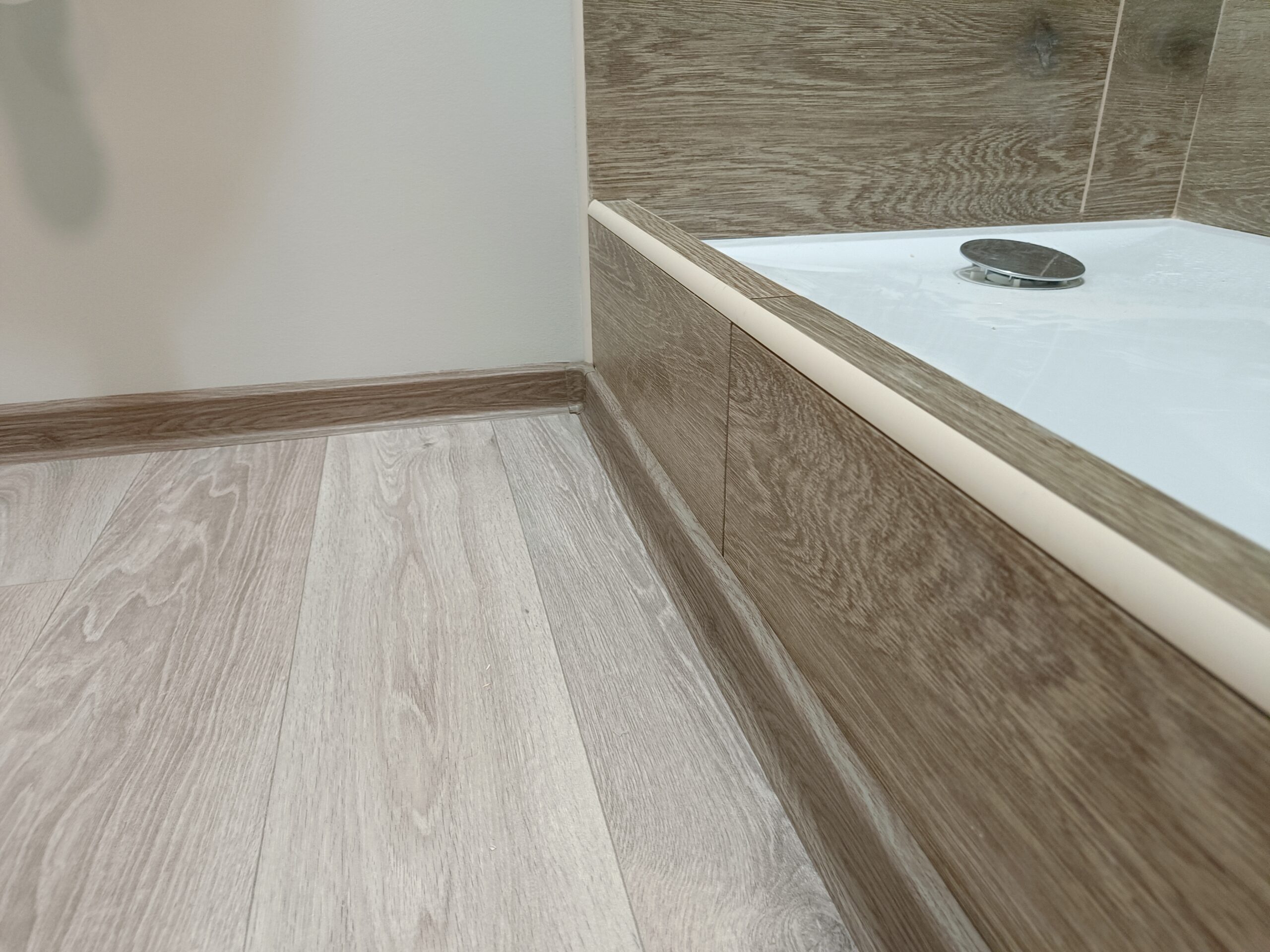 Pokládka lina bez lepení s vysokým okrajem.