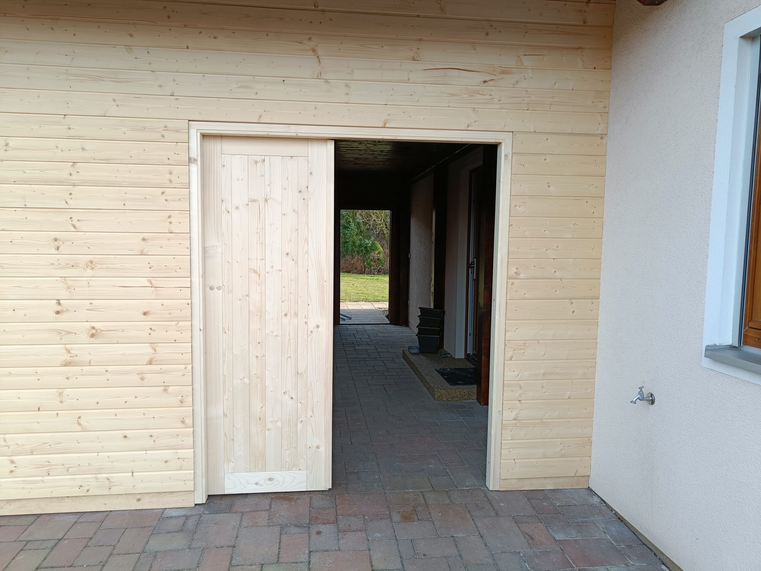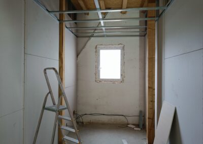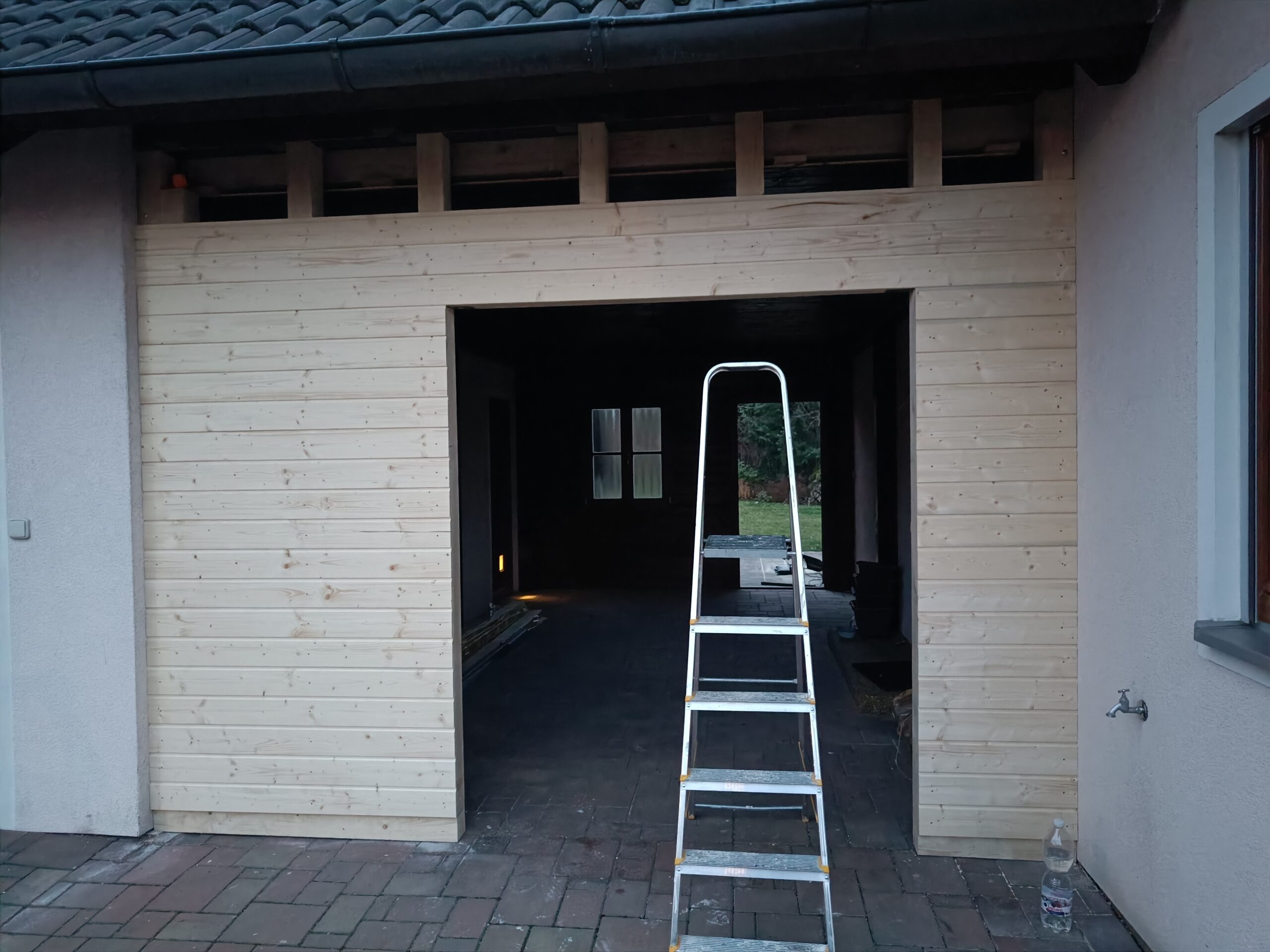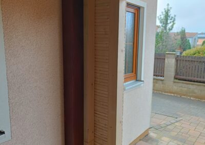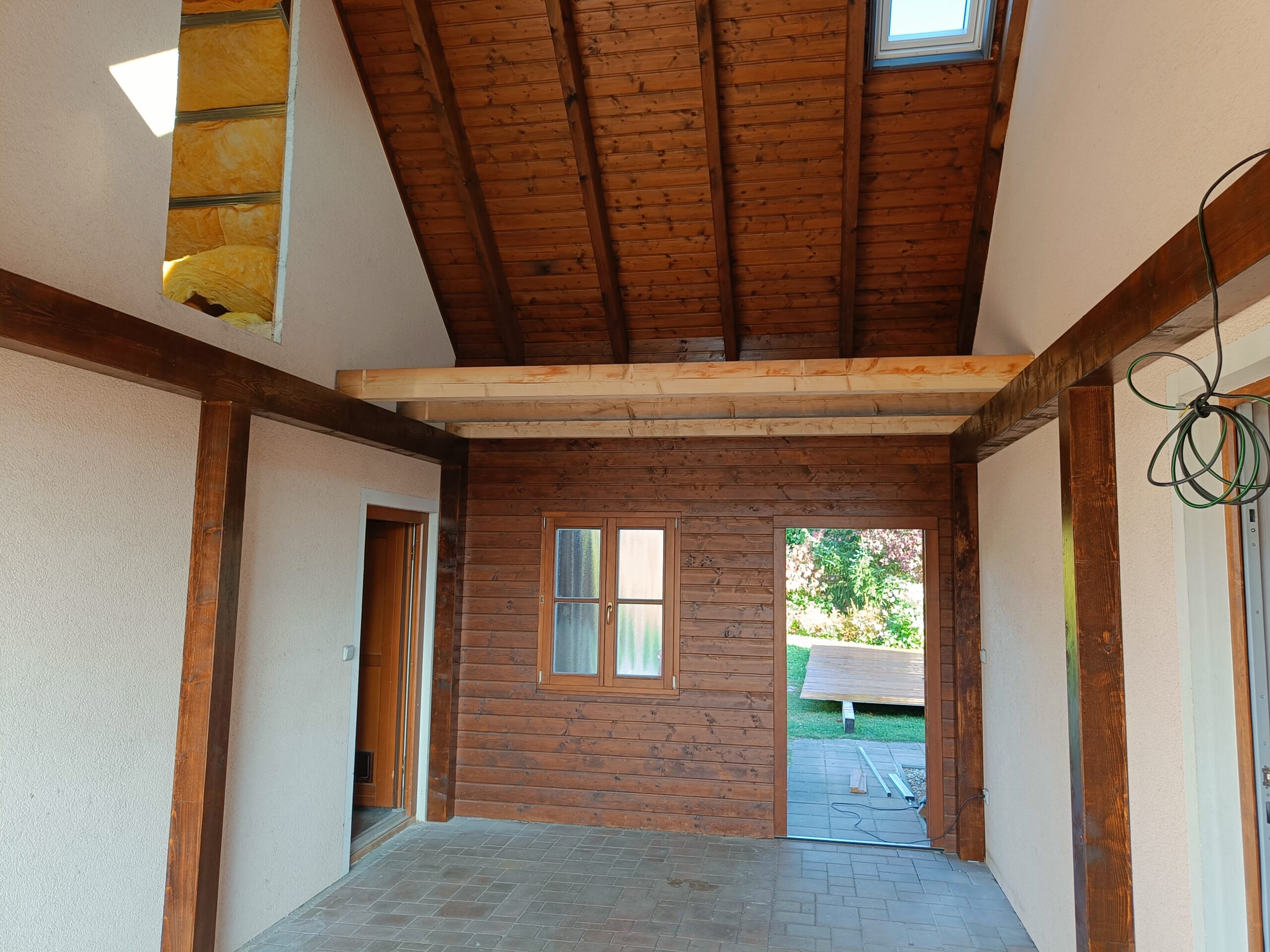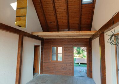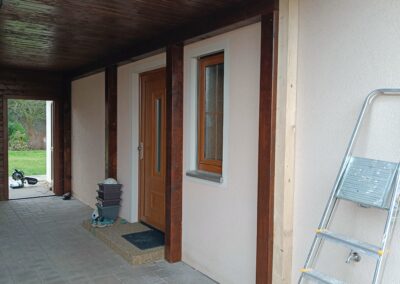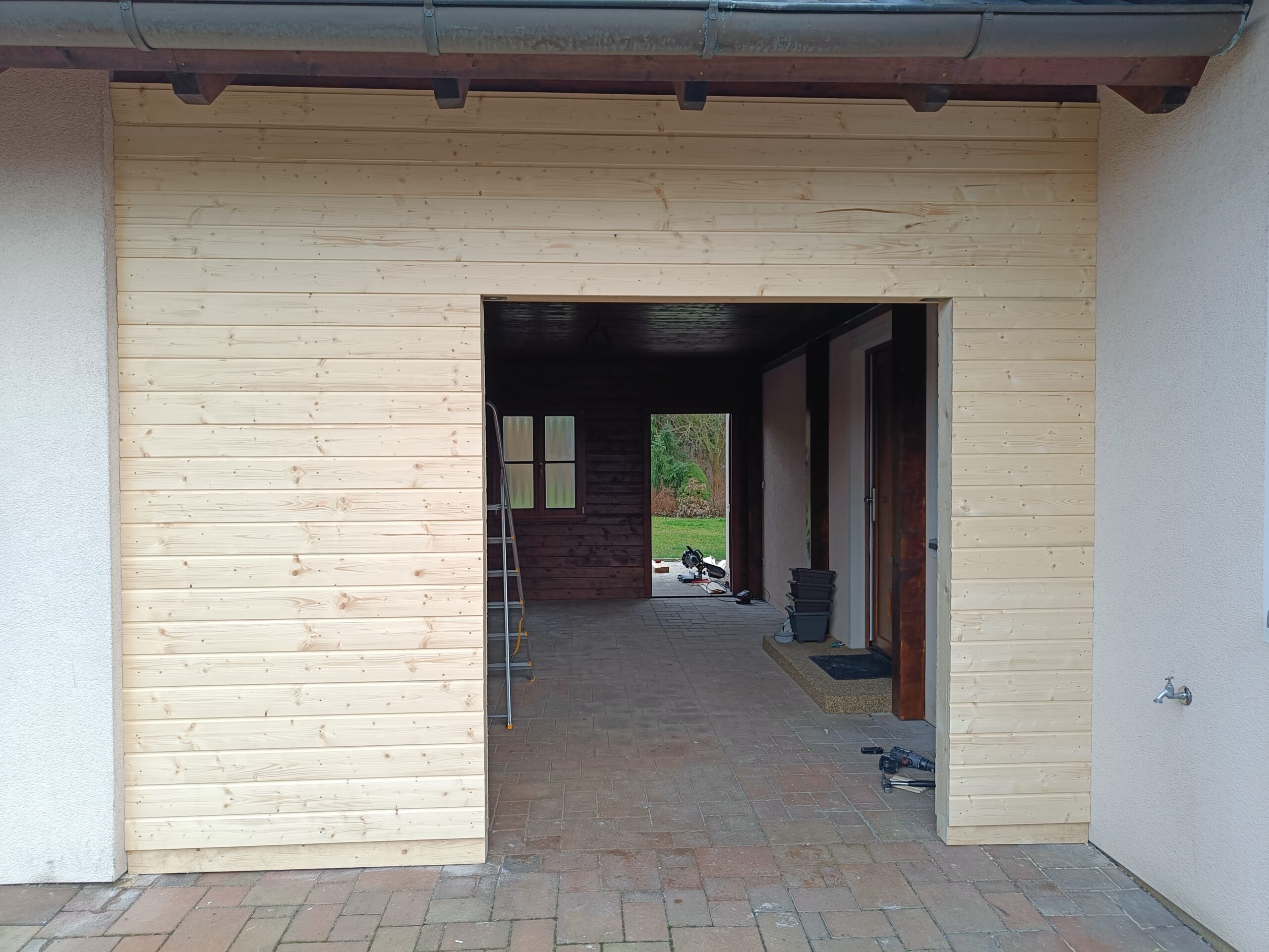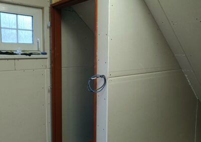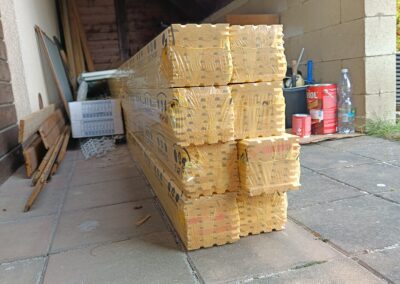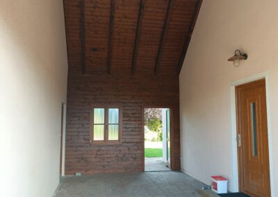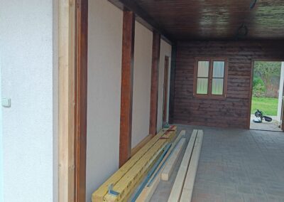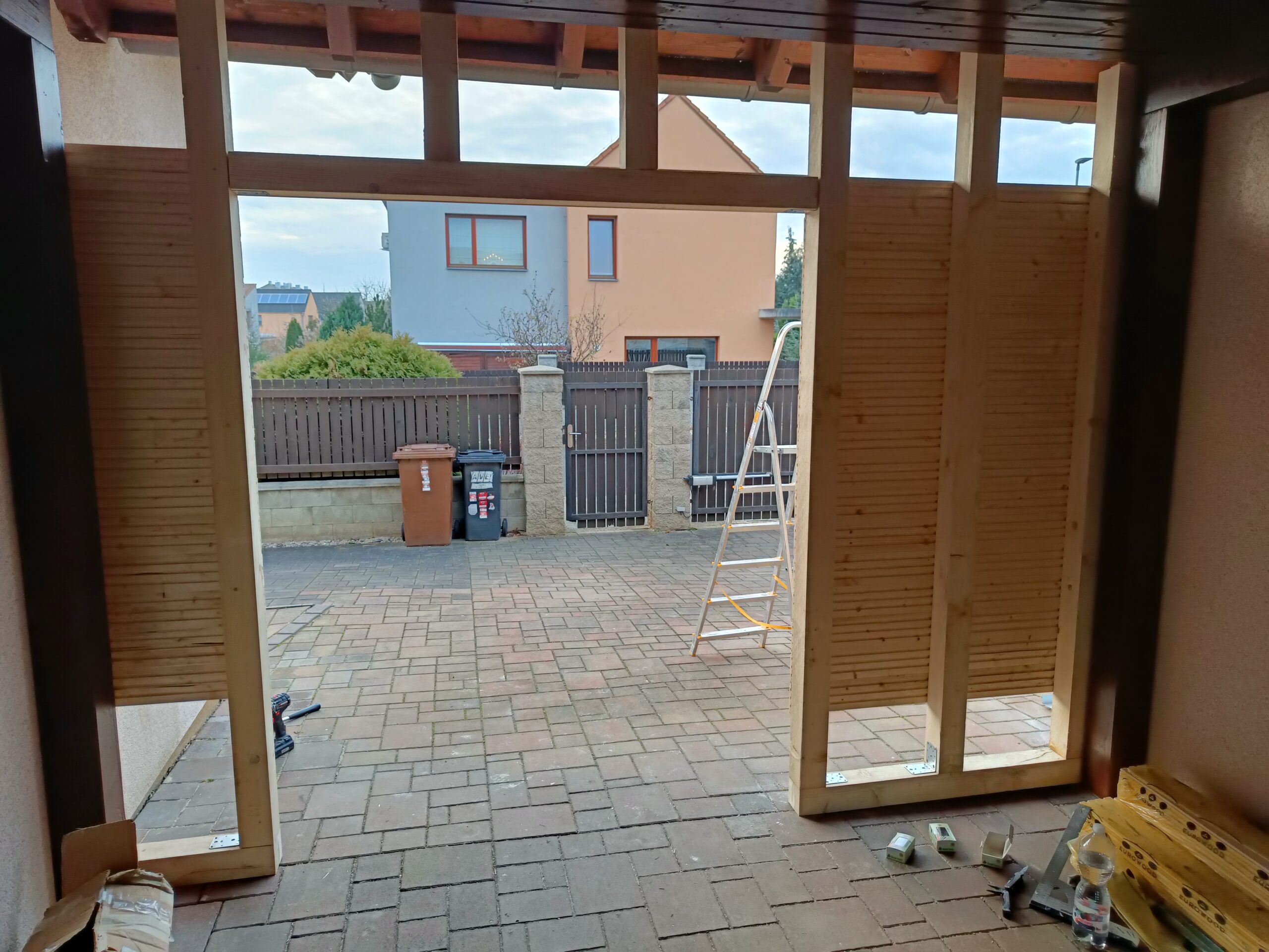 Přístavba stěny s dvoukřídlými dveřmi a izolací.