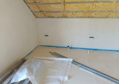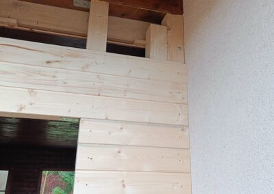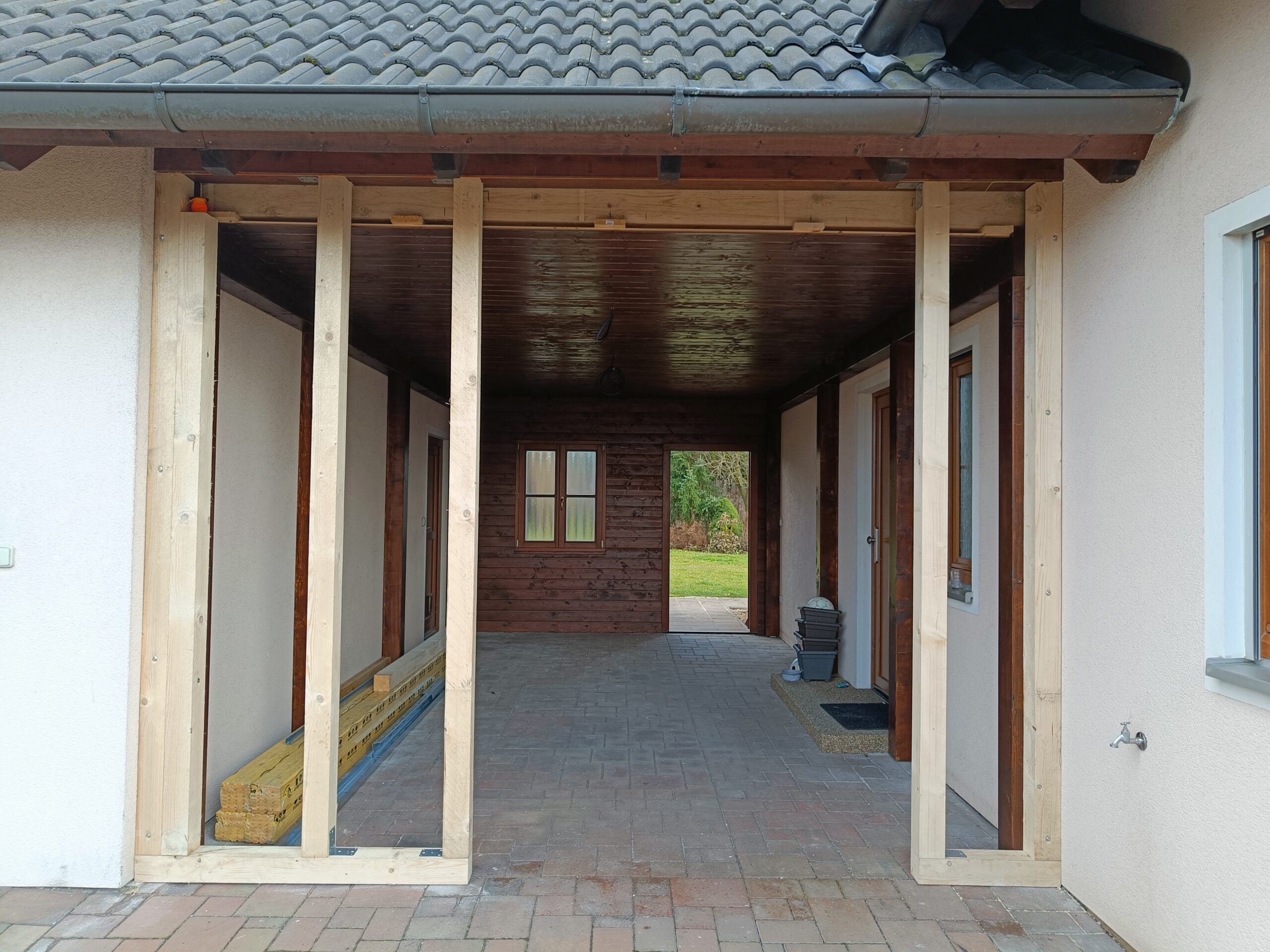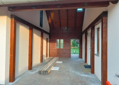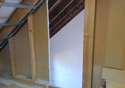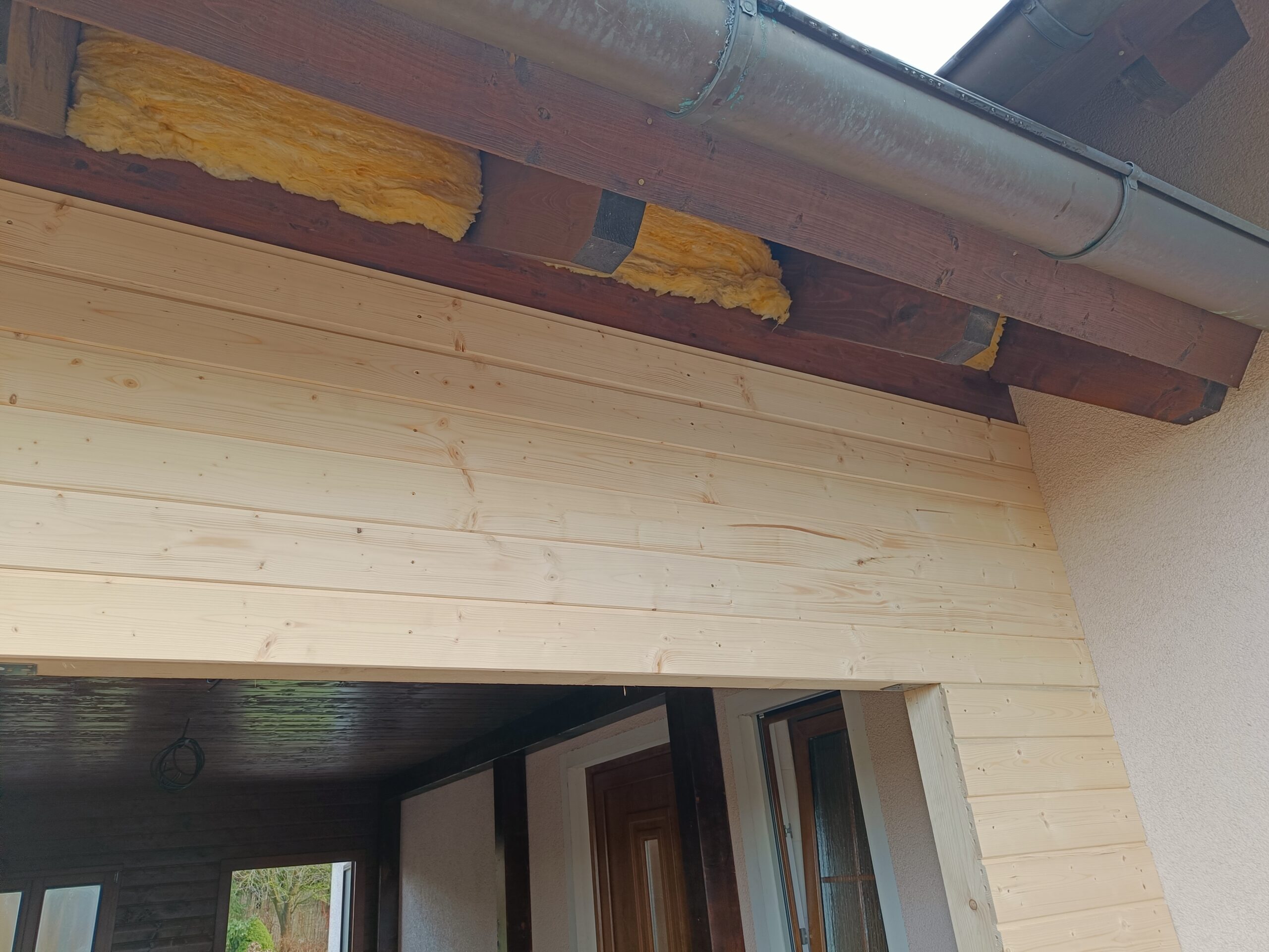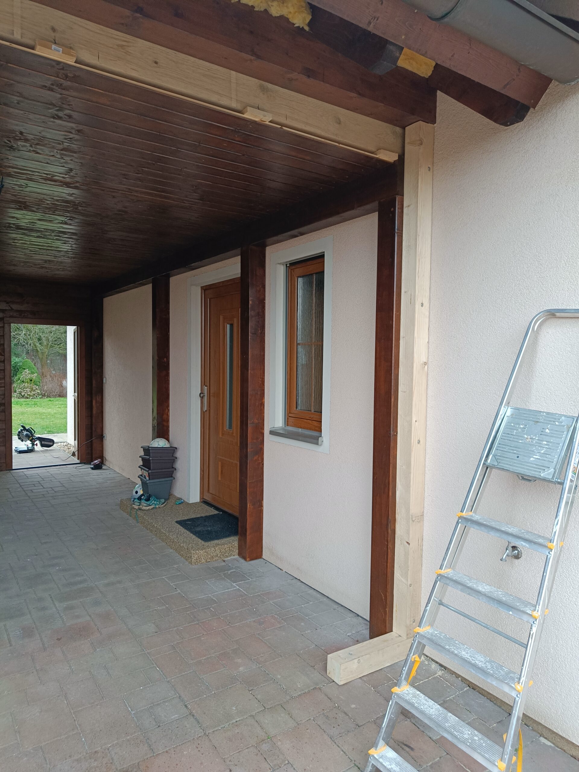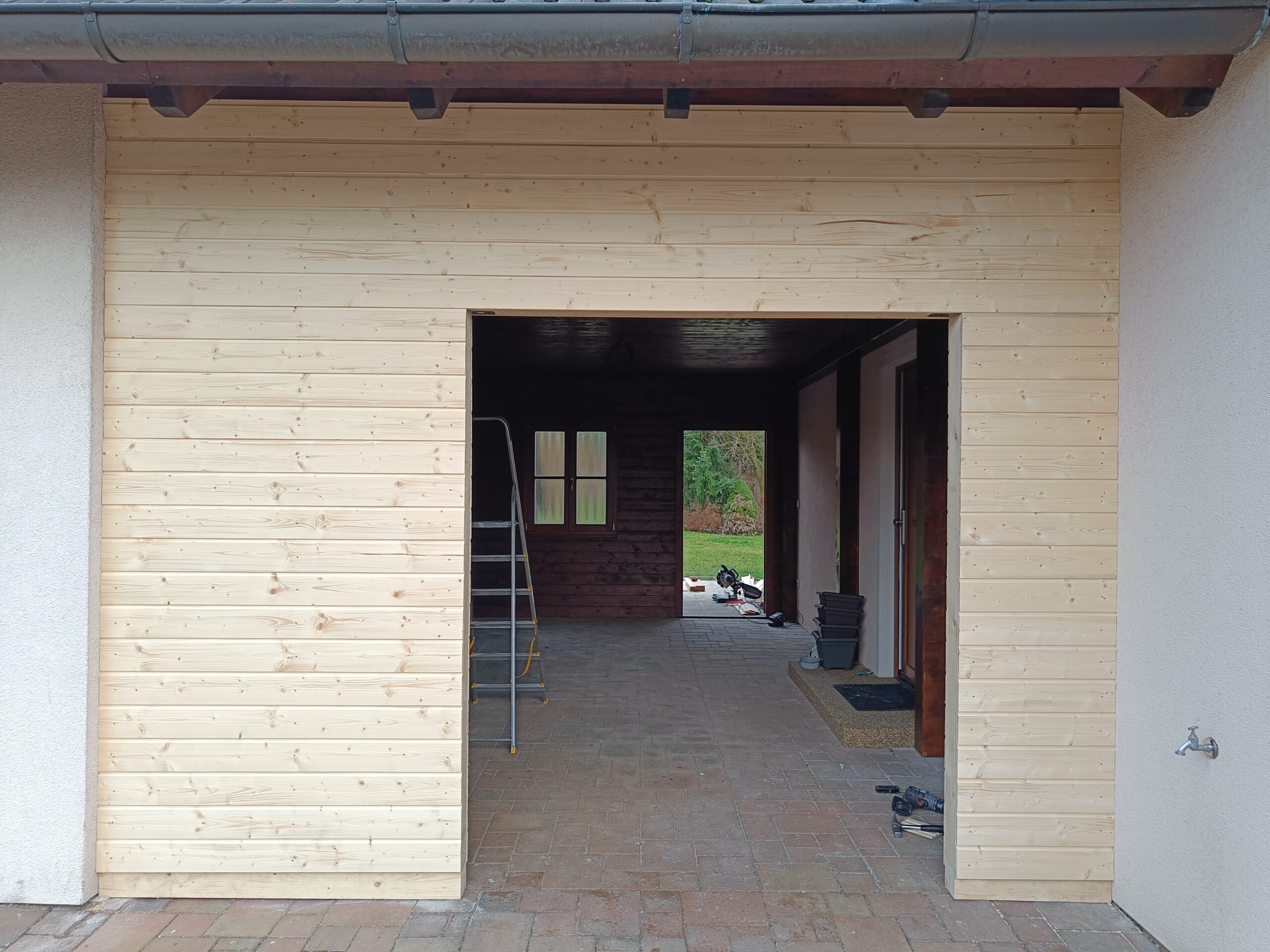 Přístavba stěny s dvoukřídlými dveřmi a izolací.