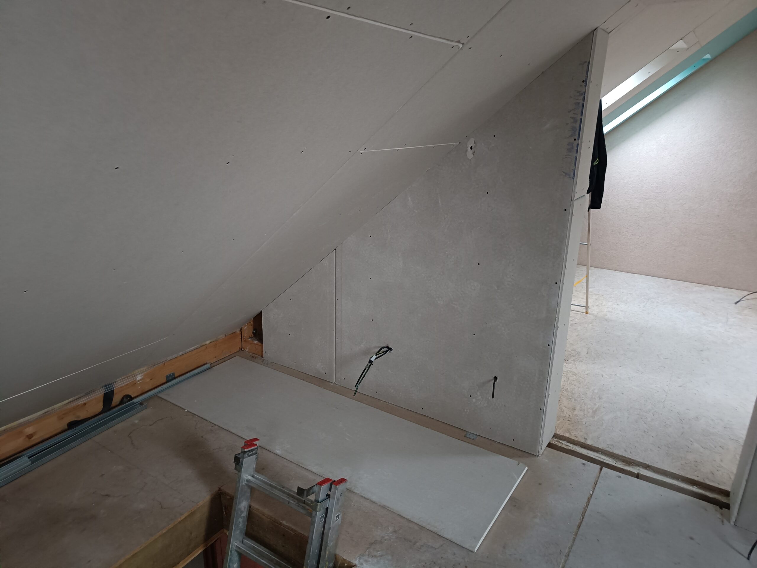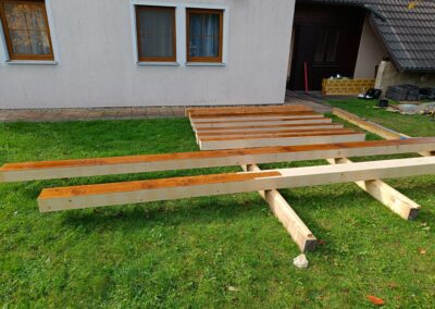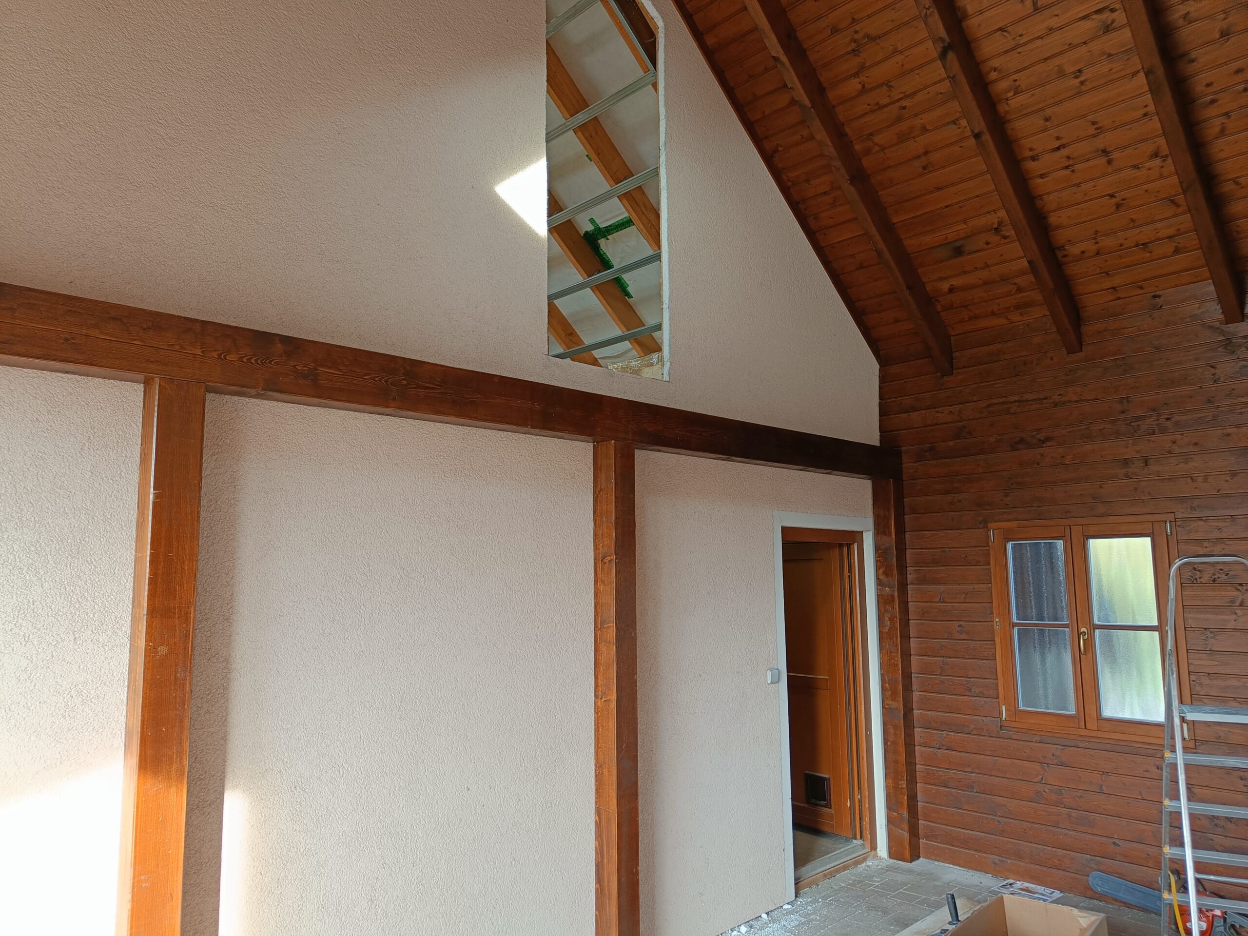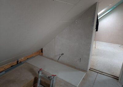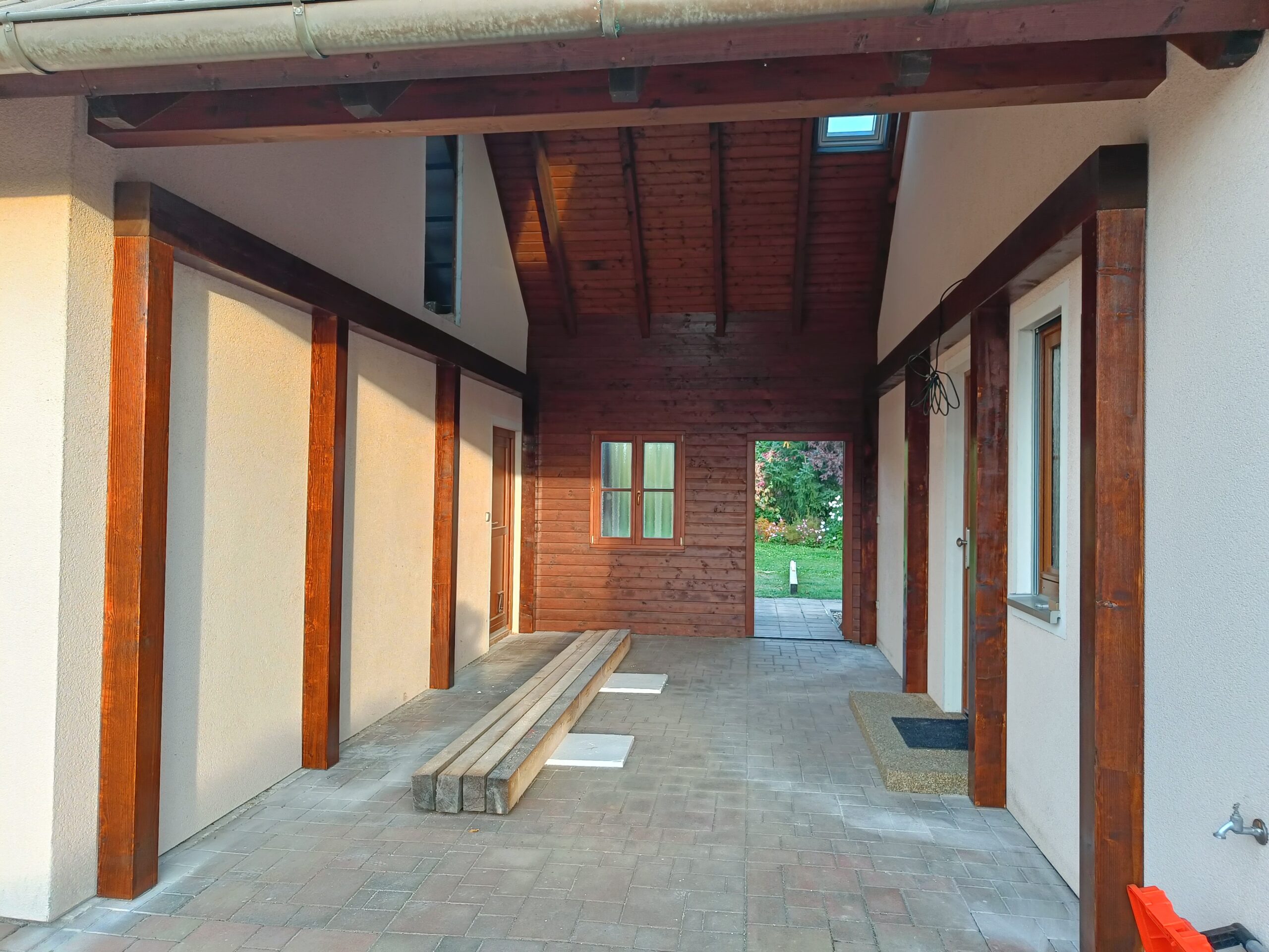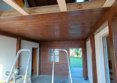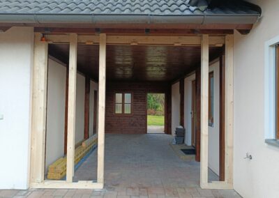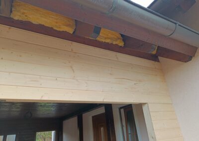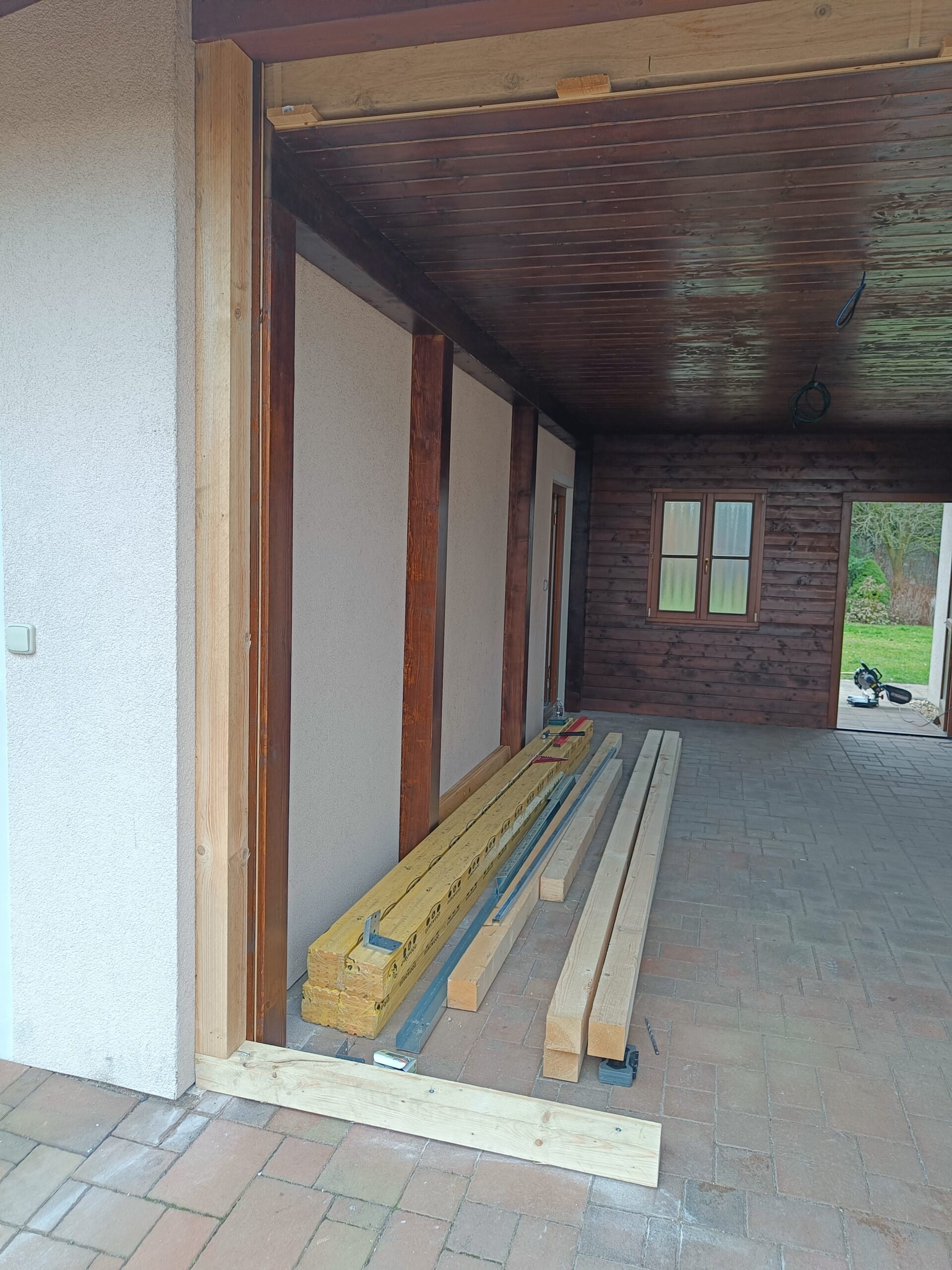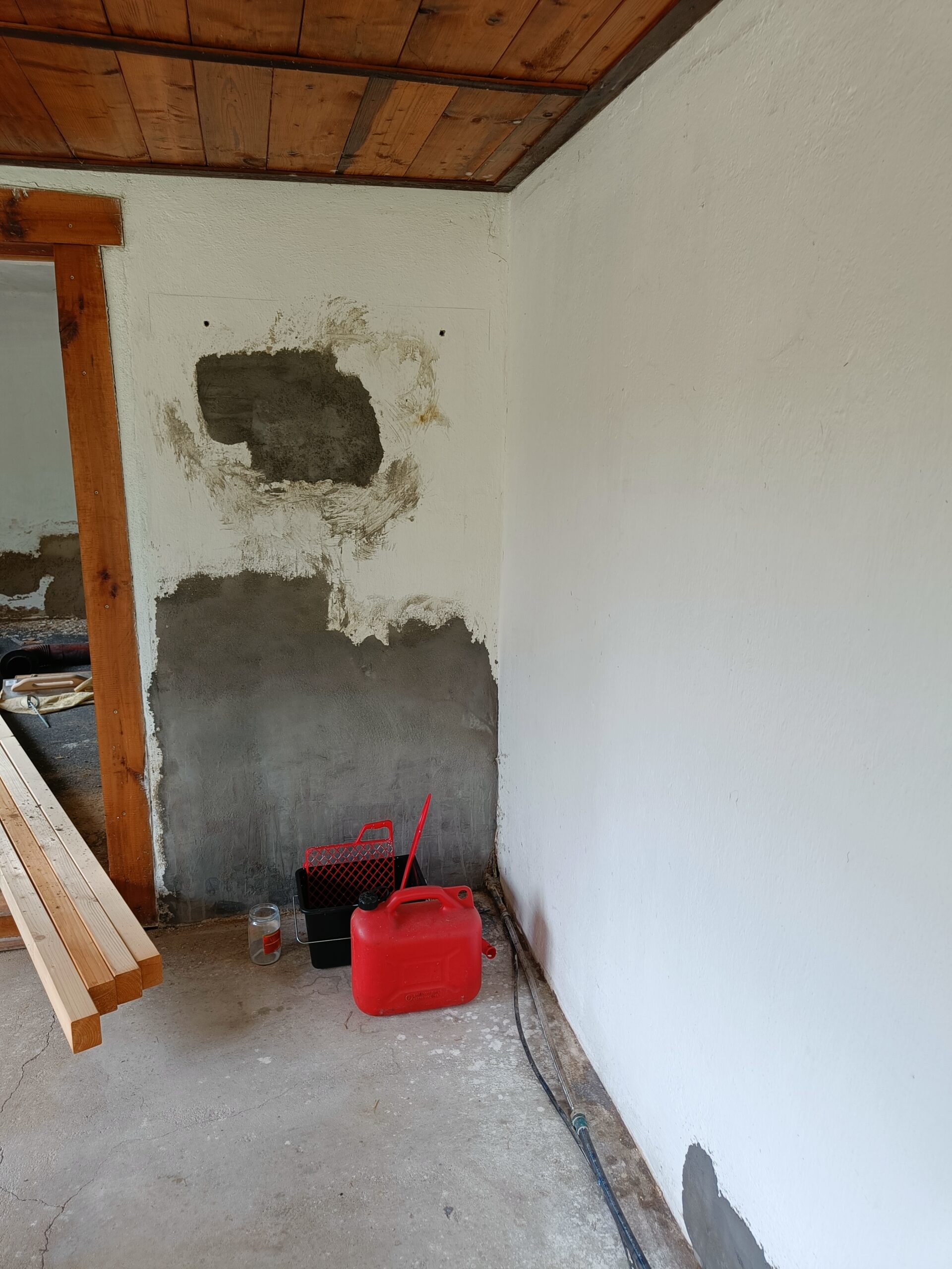 Přístavba stěny s dvoukřídlými dveřmi a izolací.