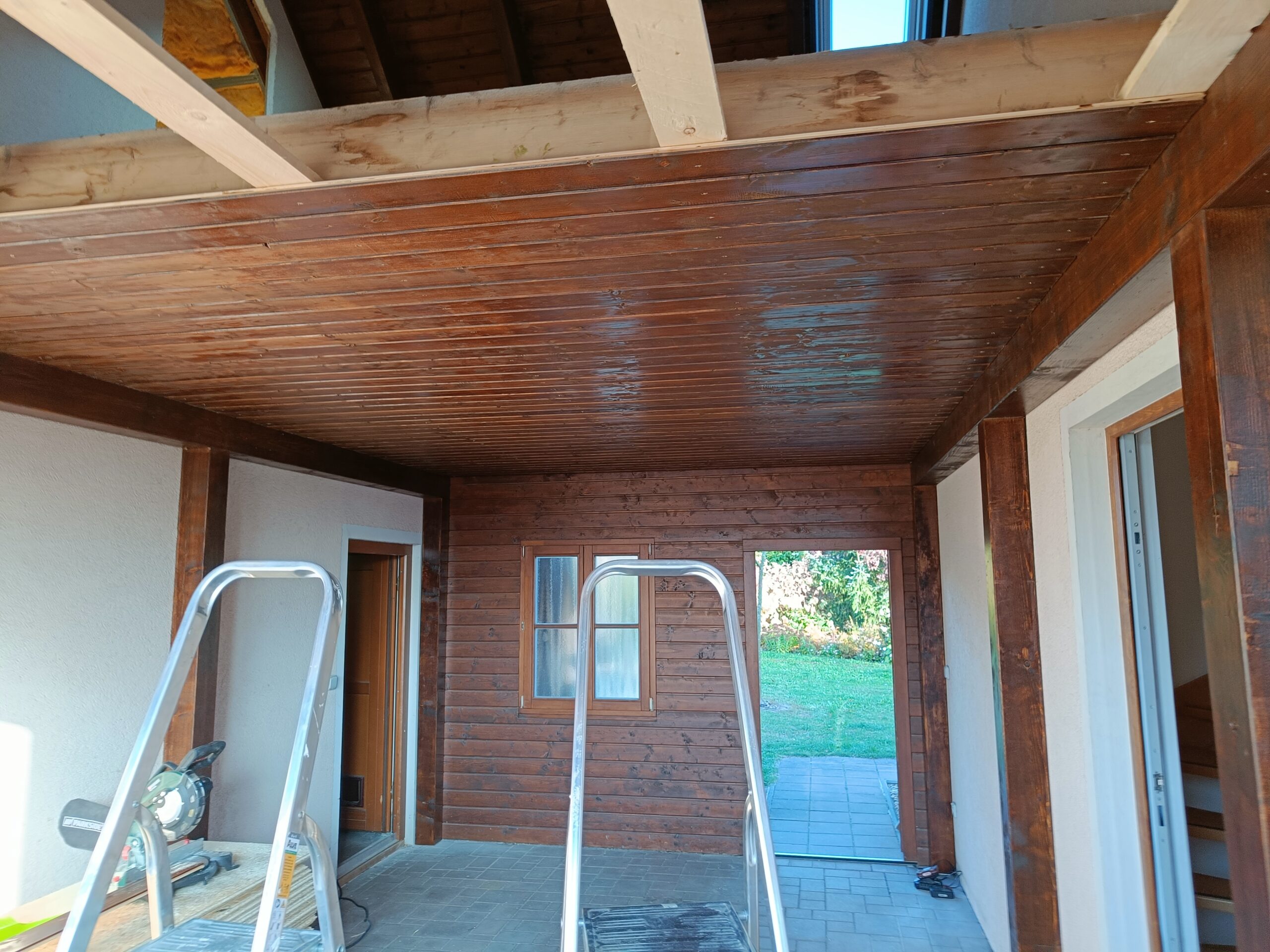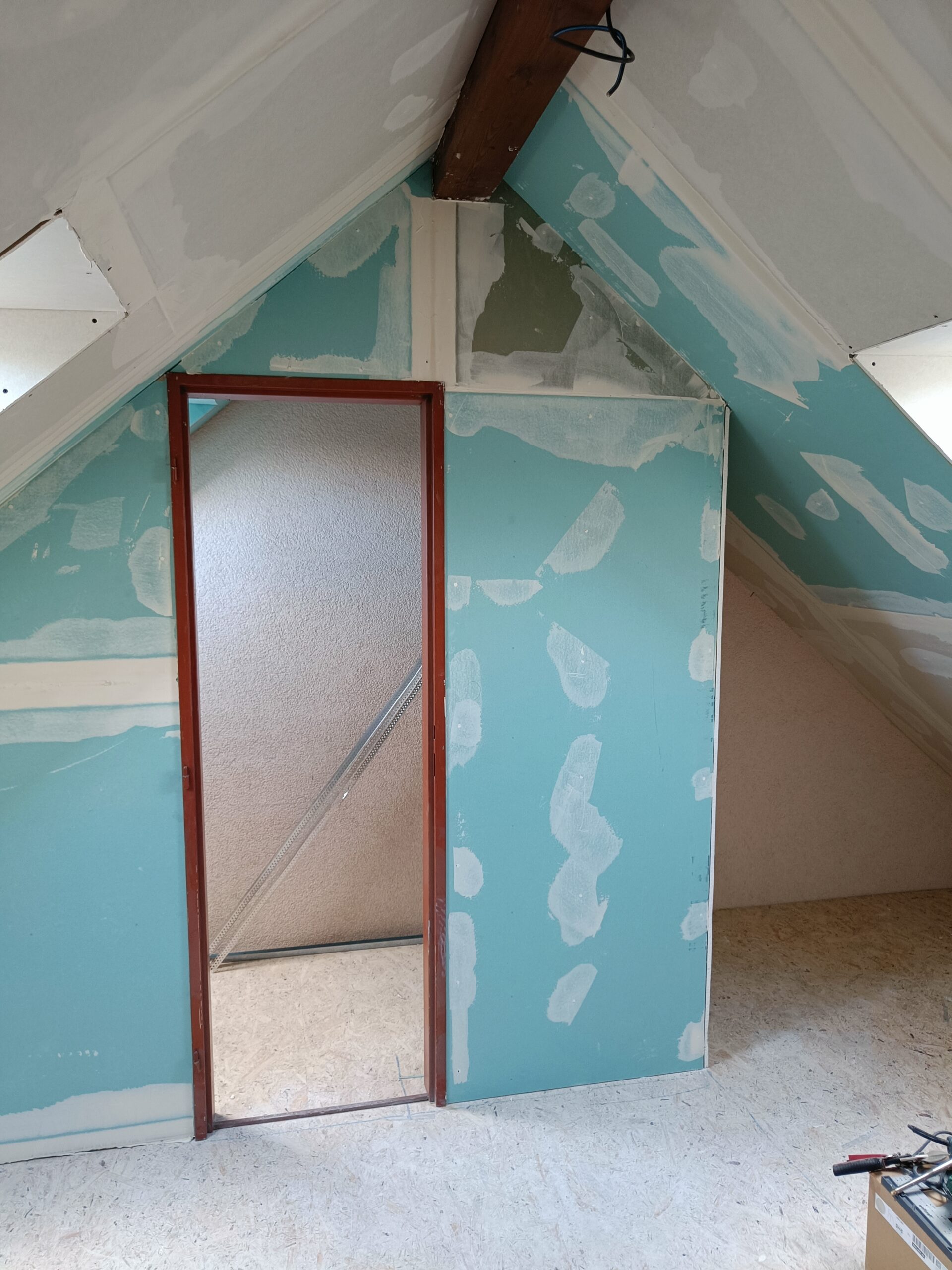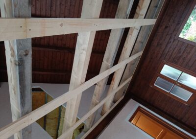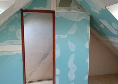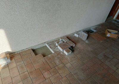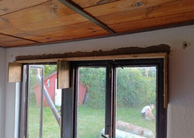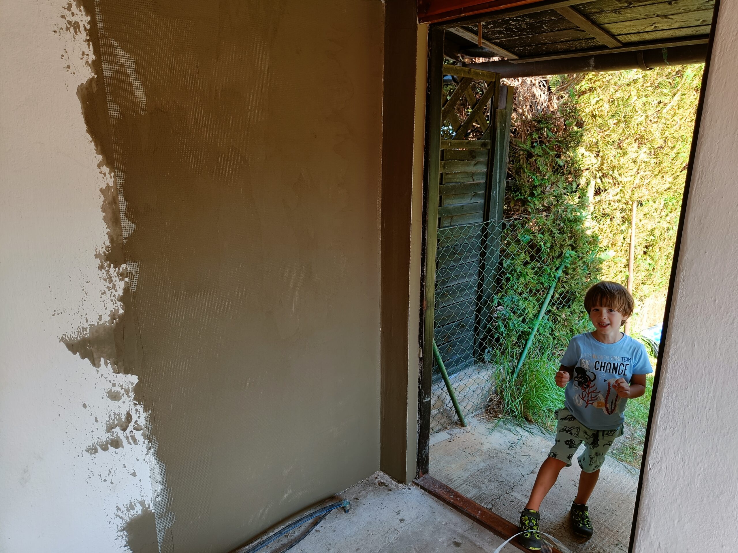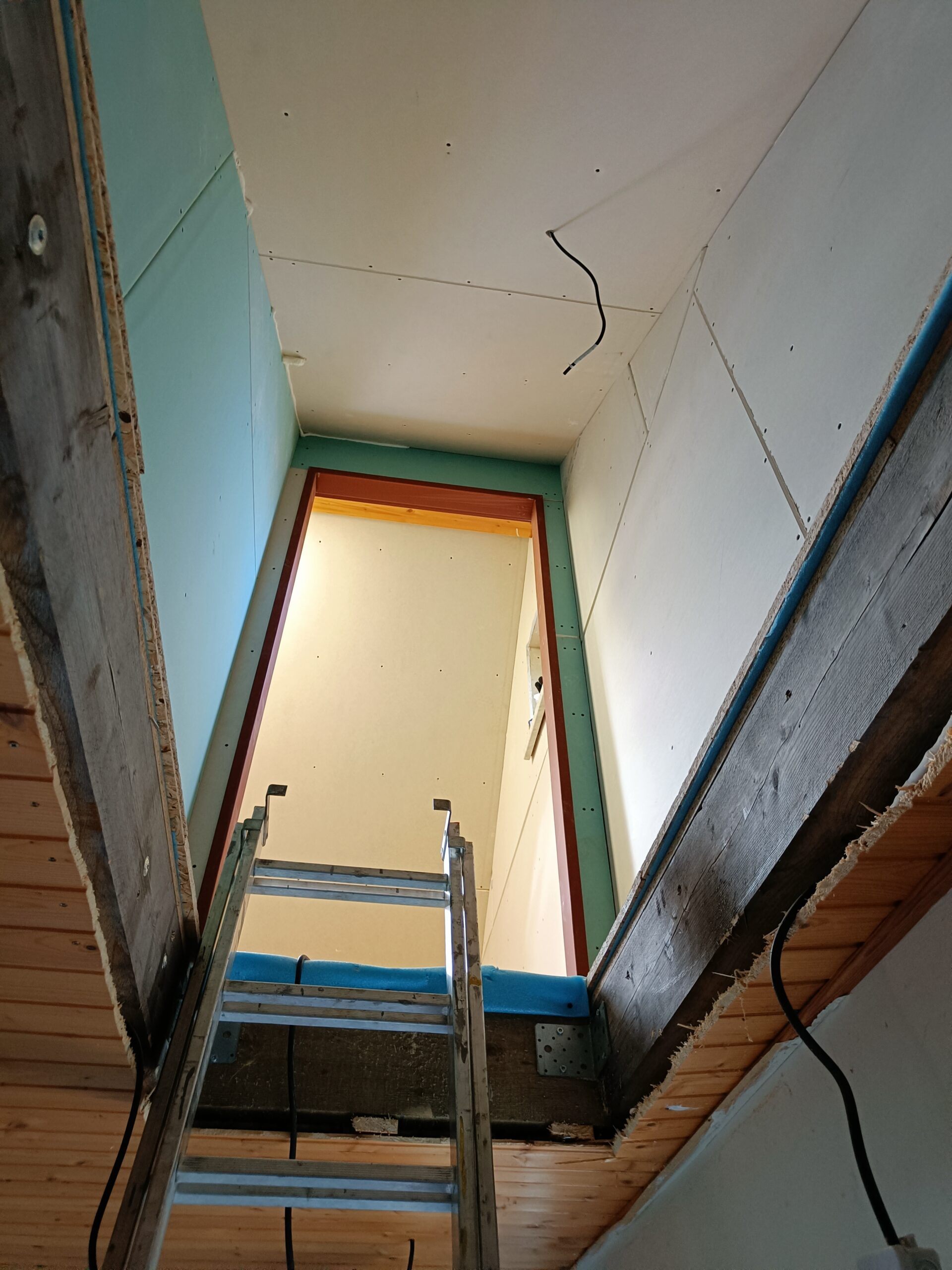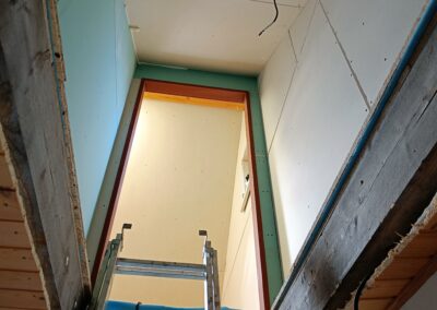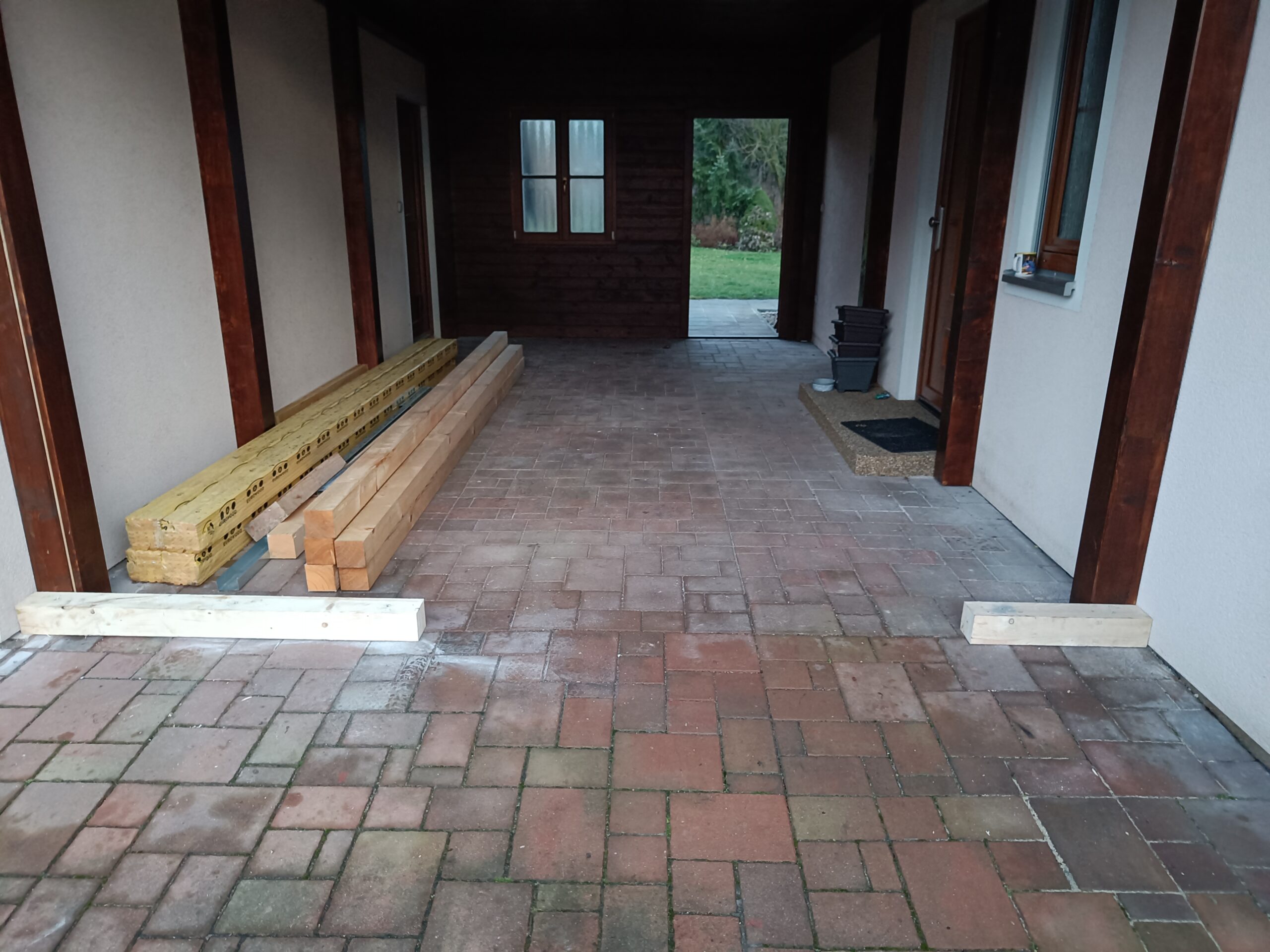 Přístavba stěny s dvoukřídlými dveřmi a izolací.