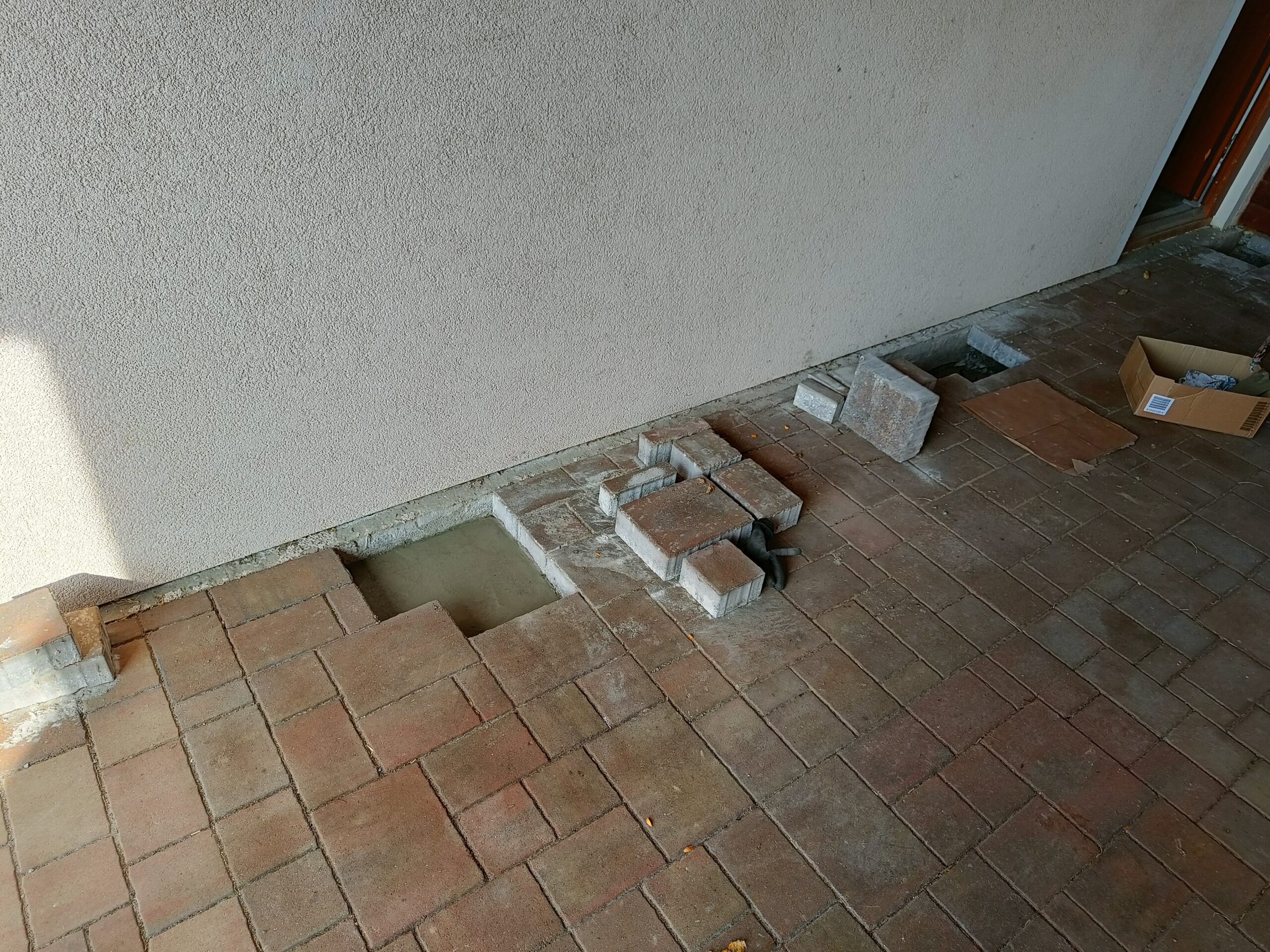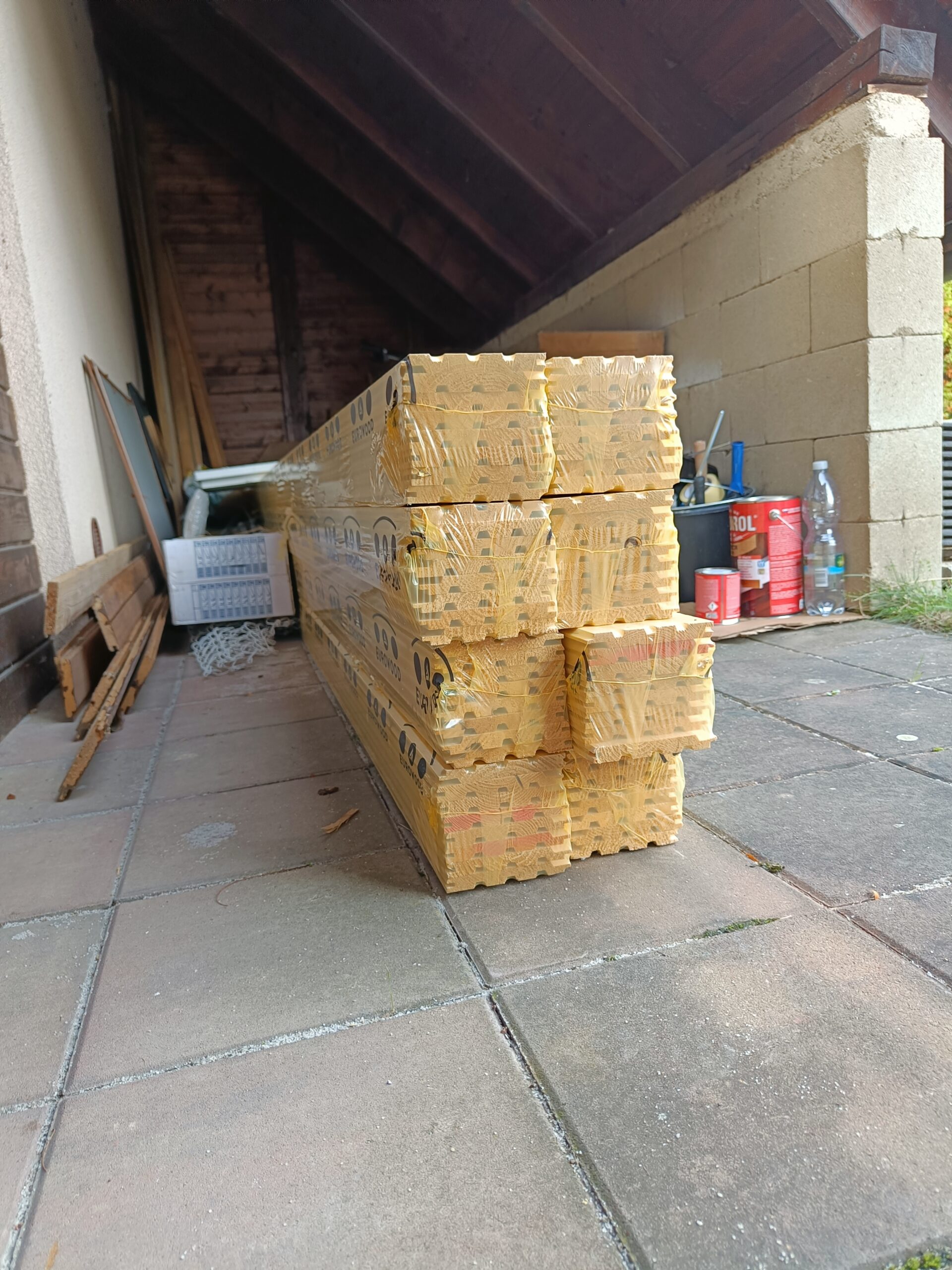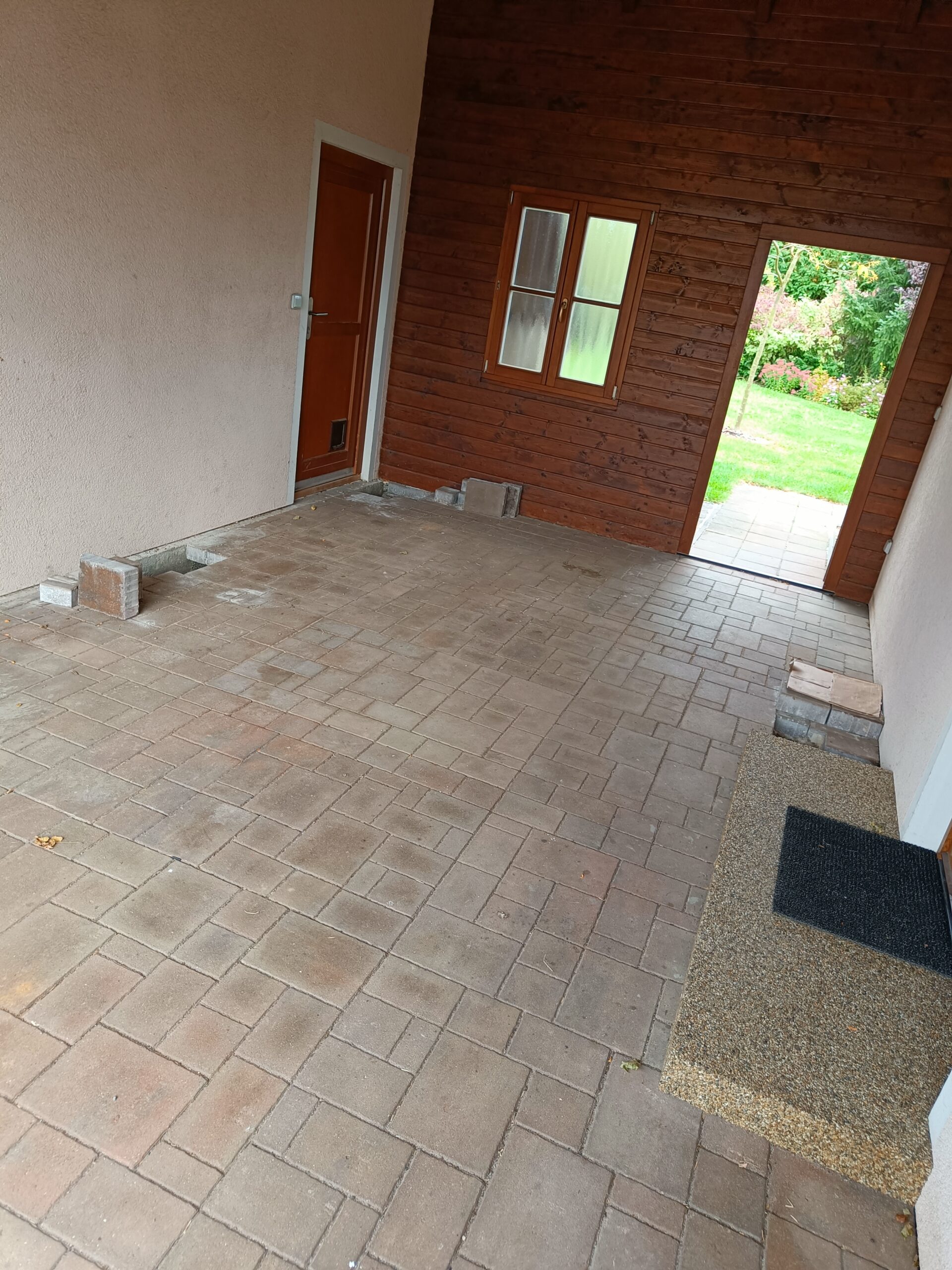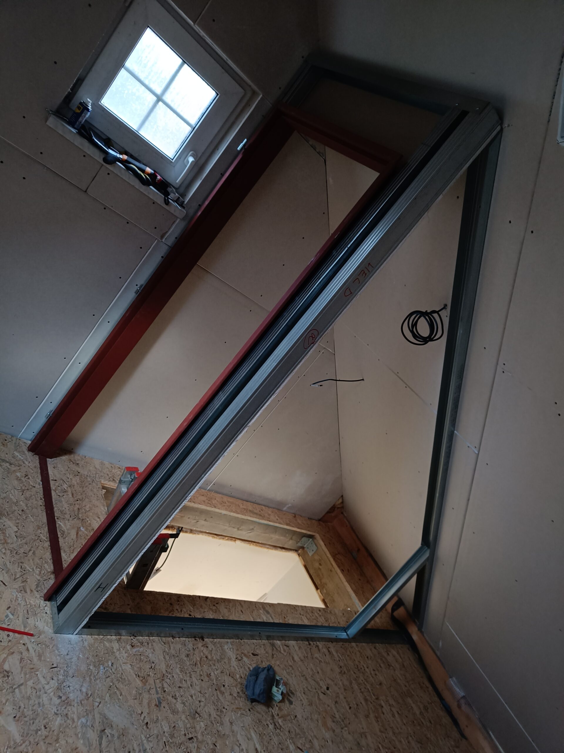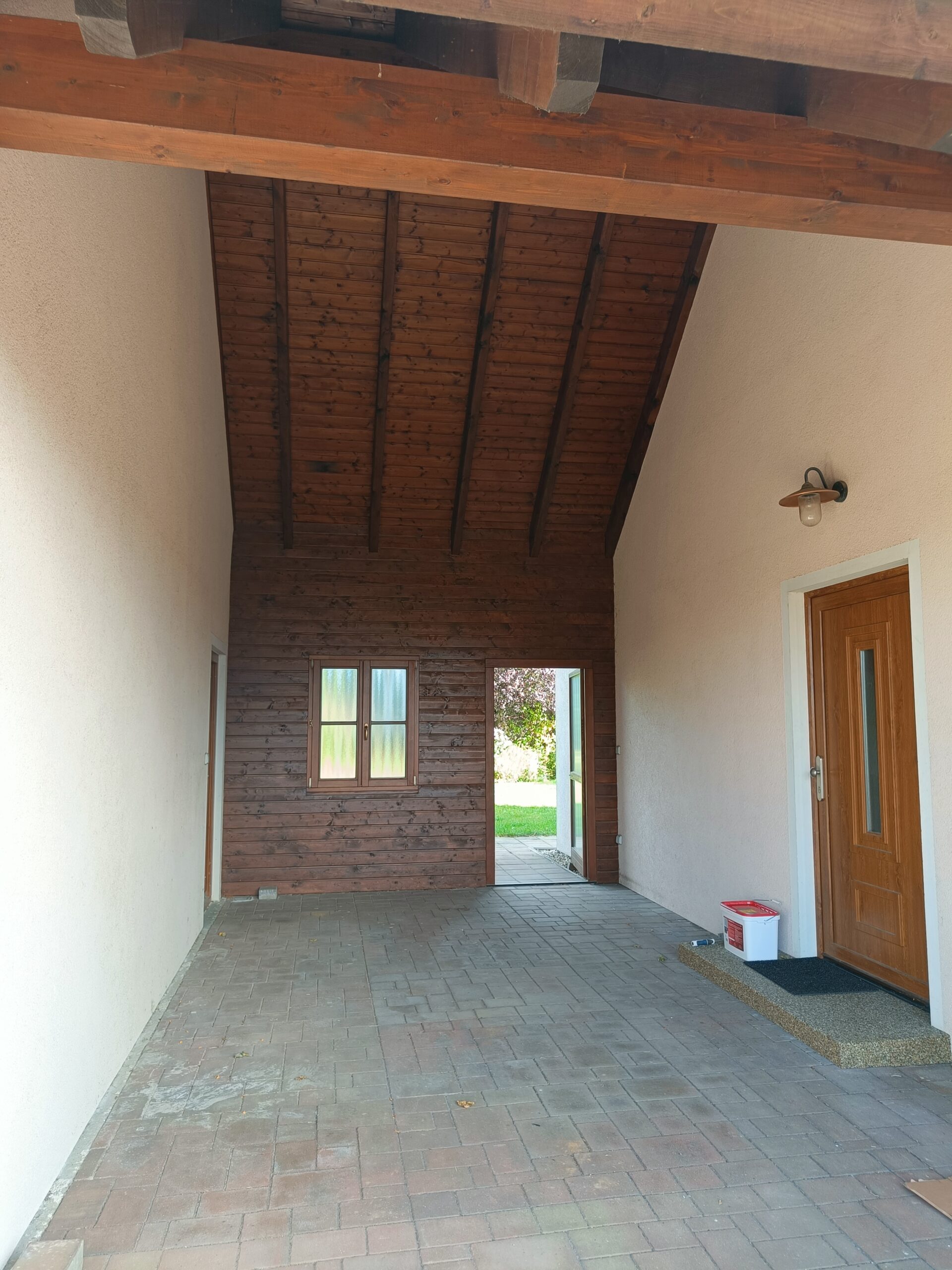 Přístavba stěny s dvoukřídlými dveřmi a izolací.