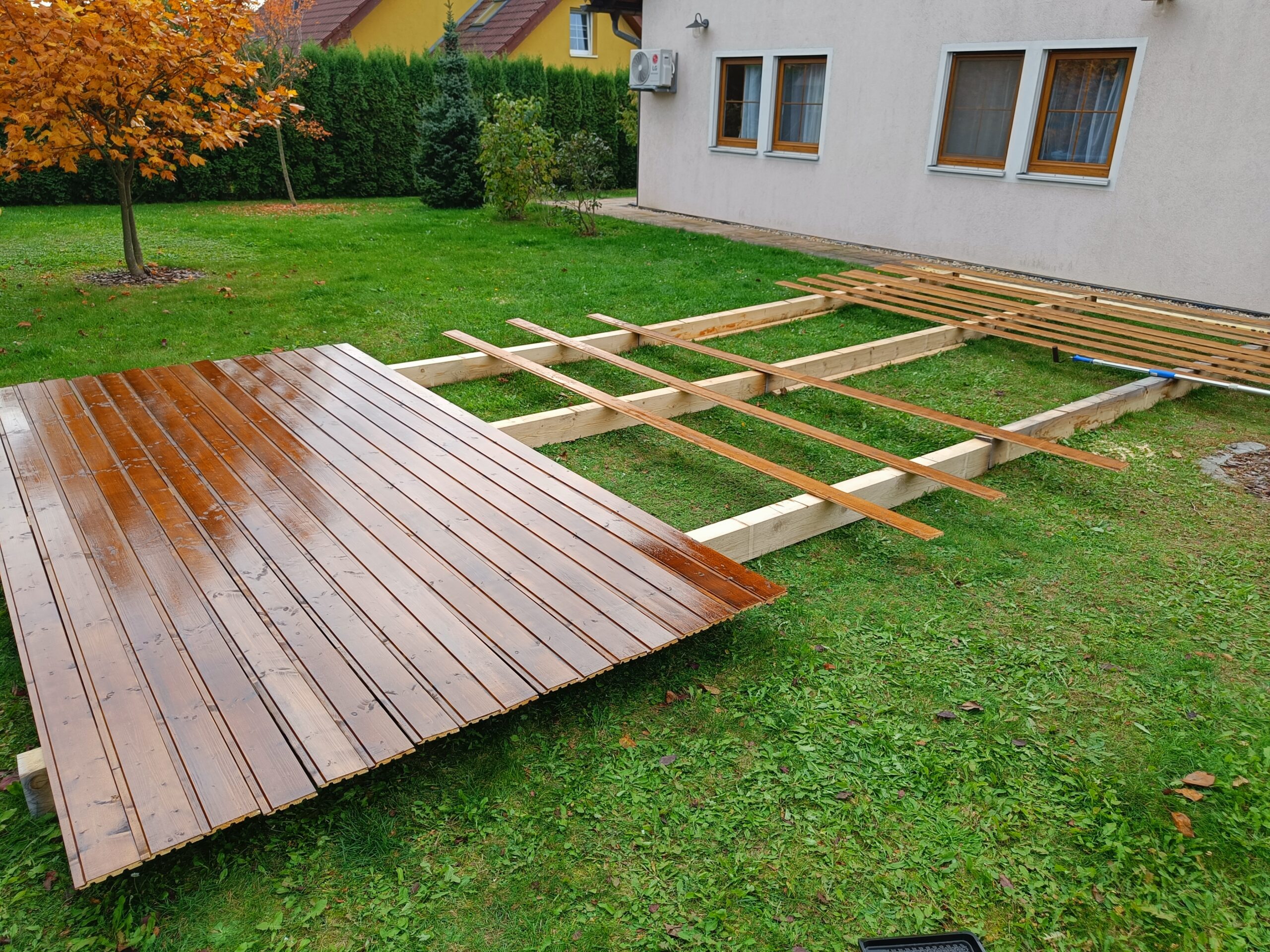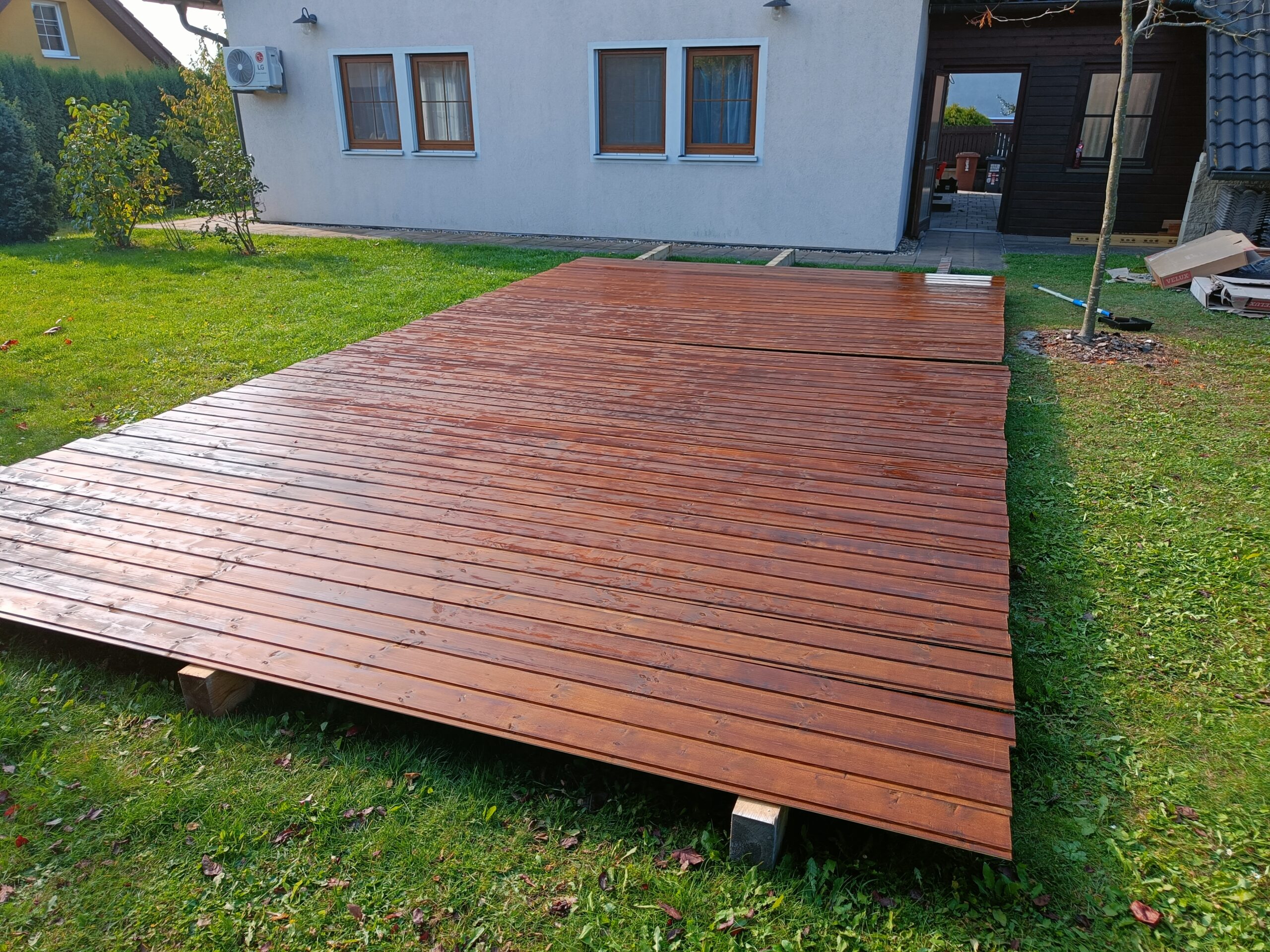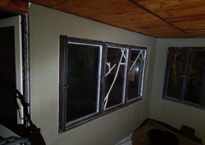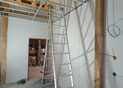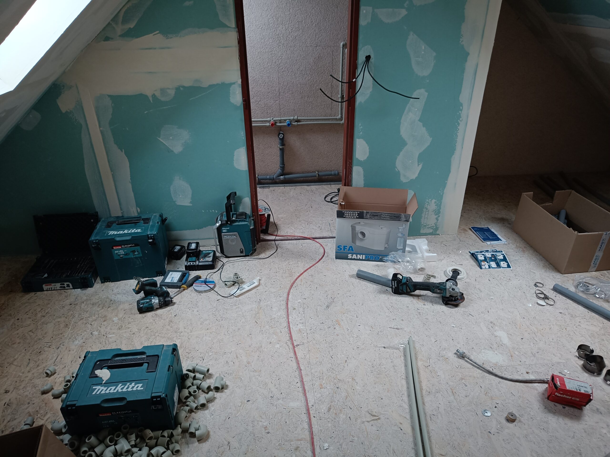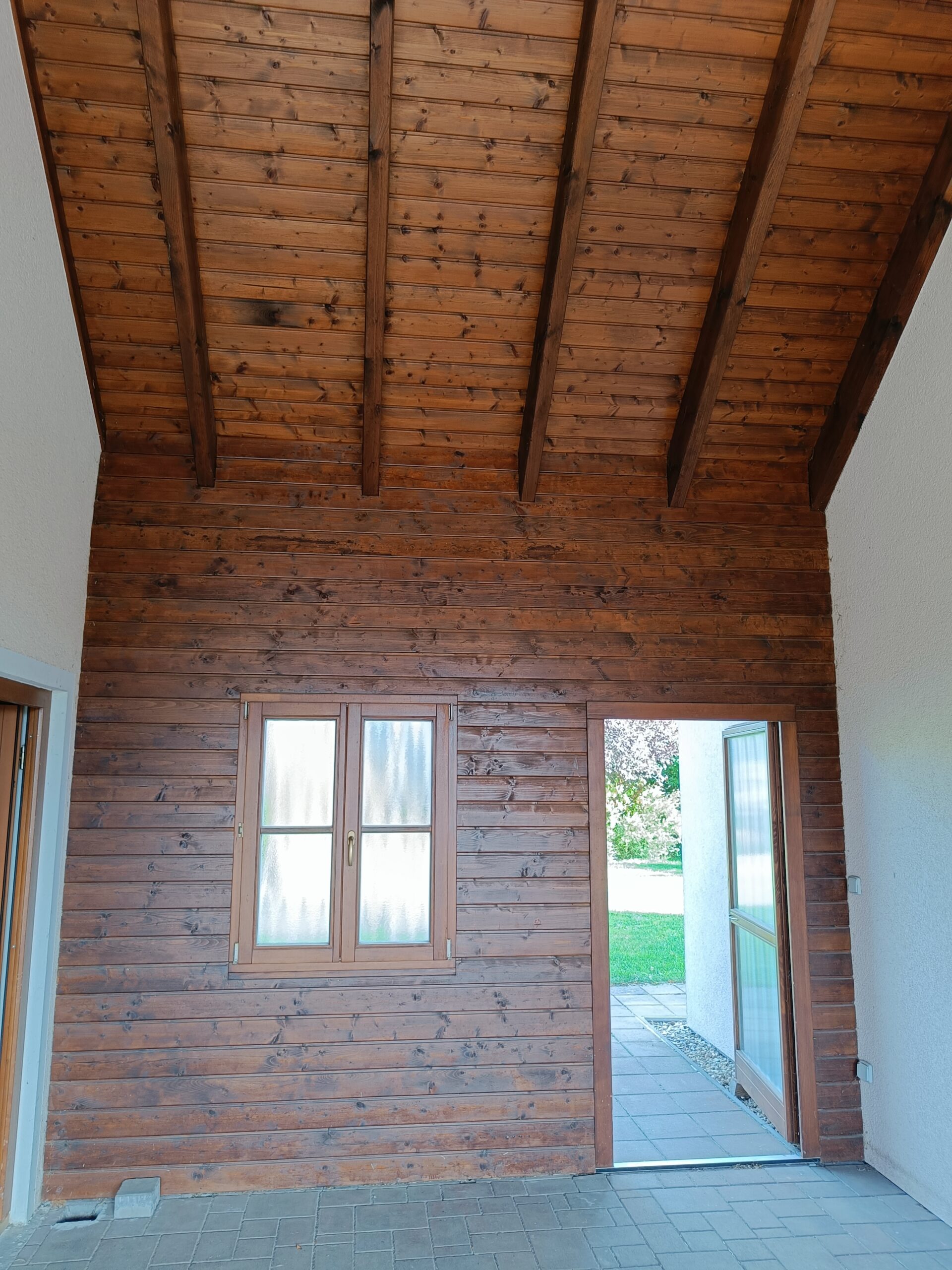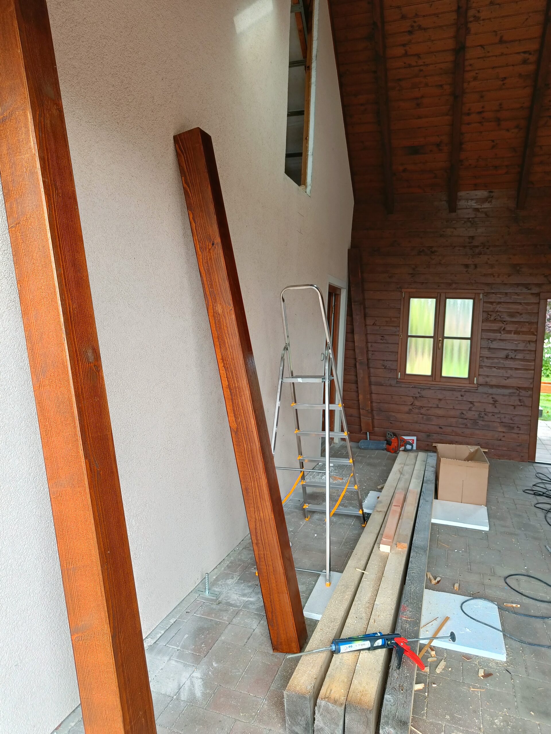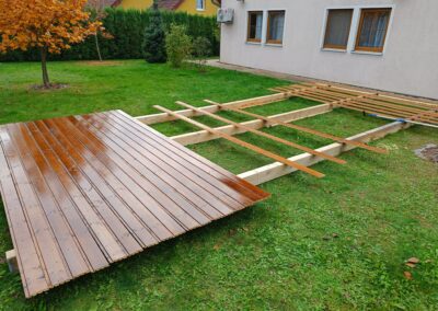 Přístavba stěny s dvoukřídlými dveřmi a izolací.