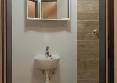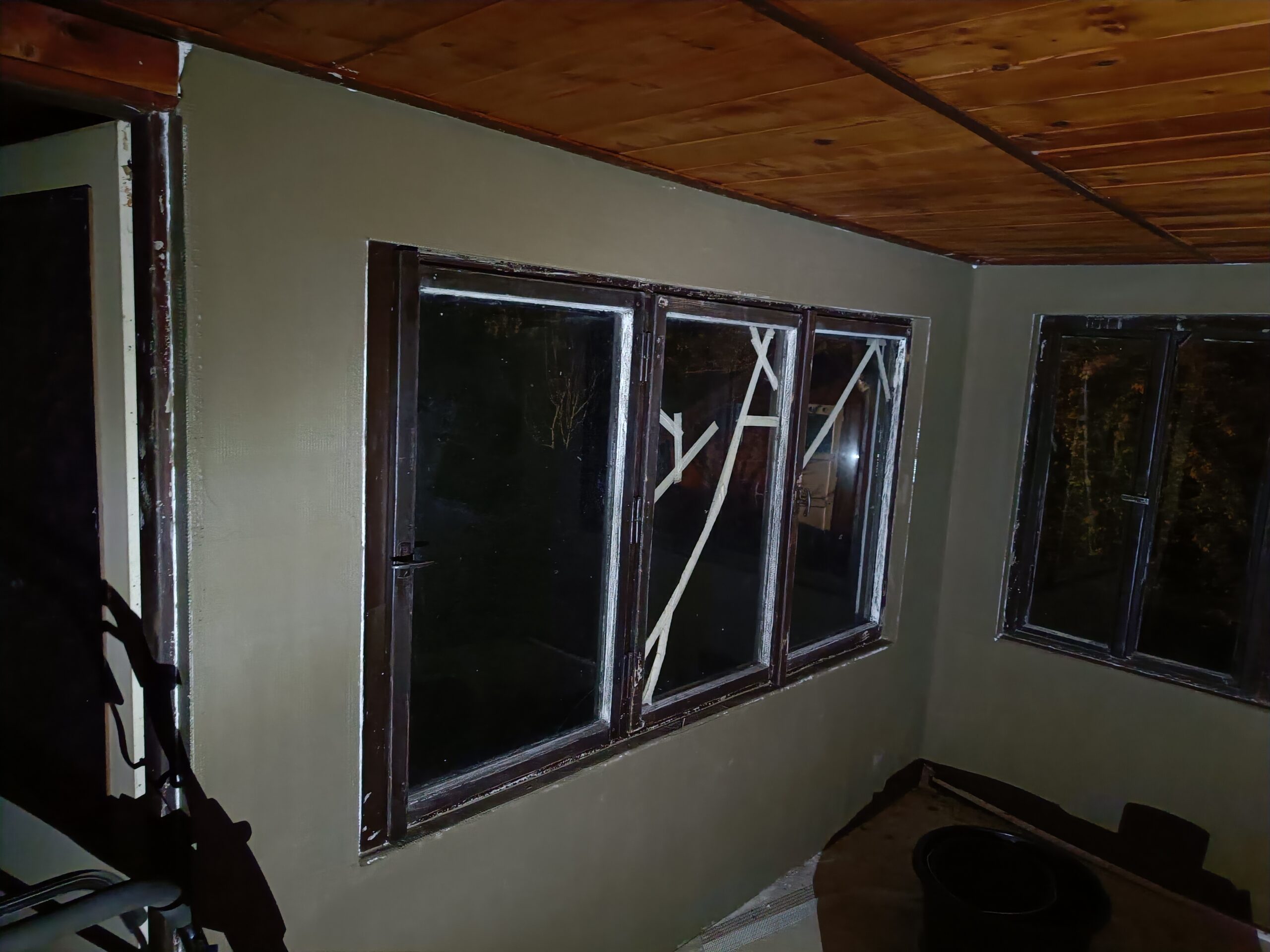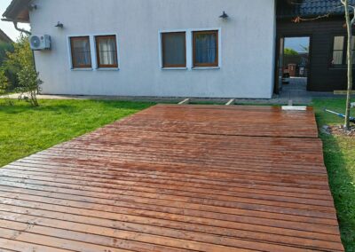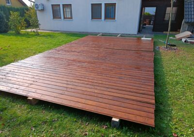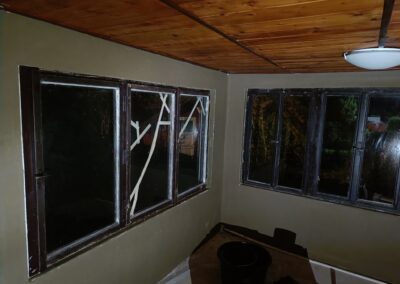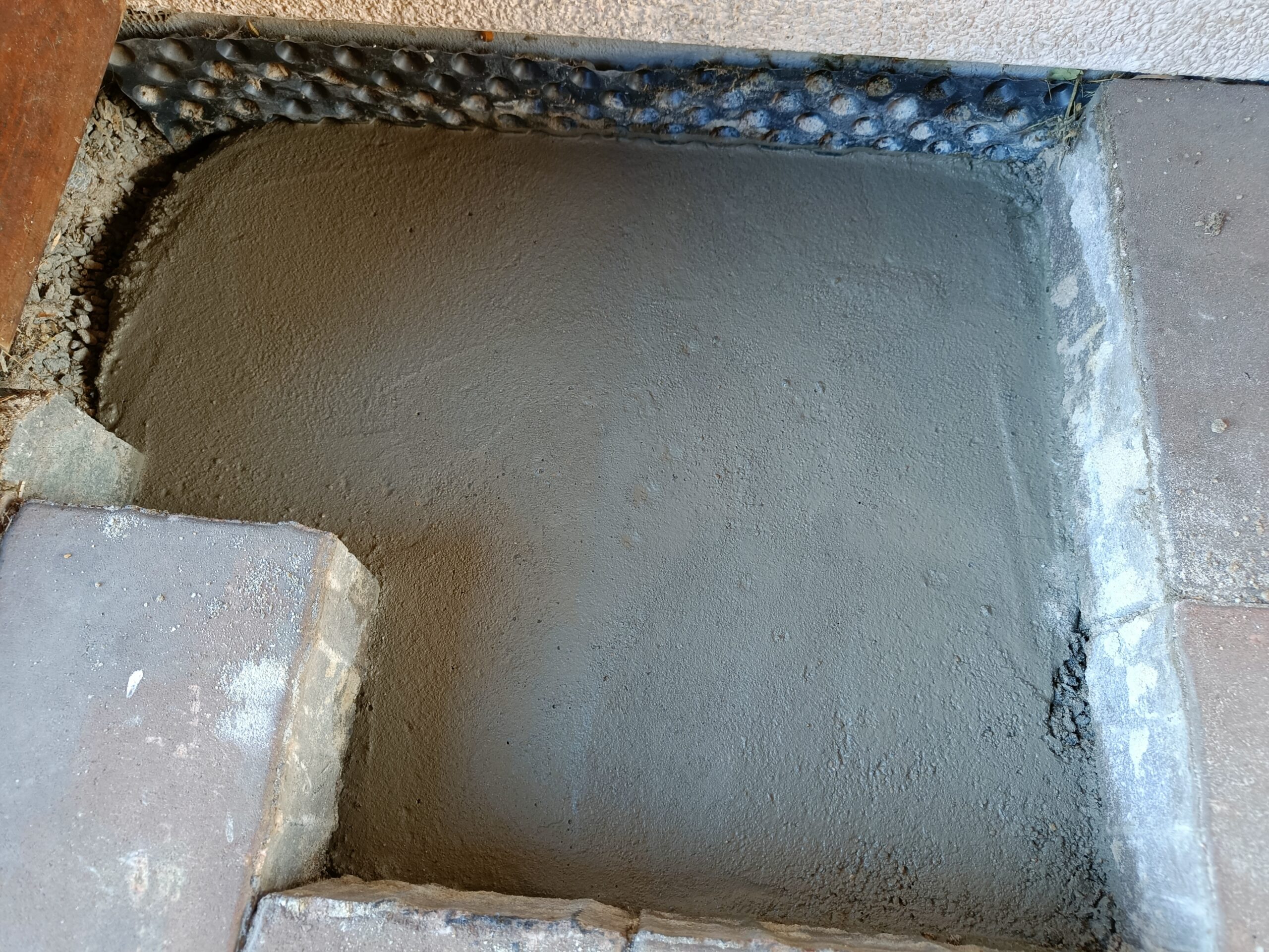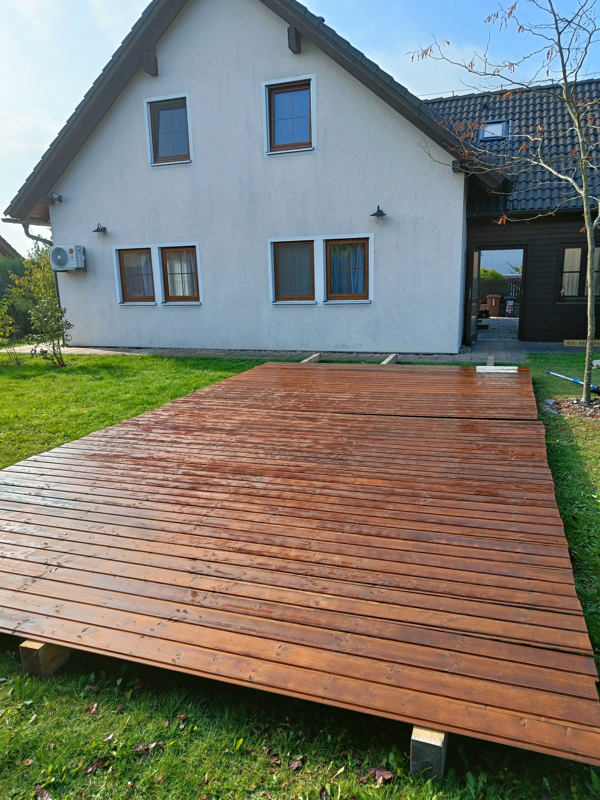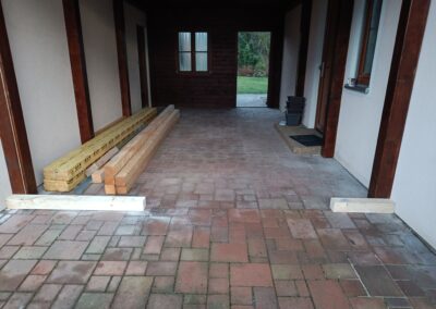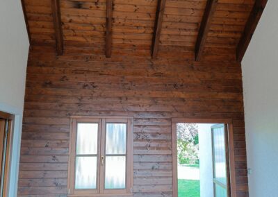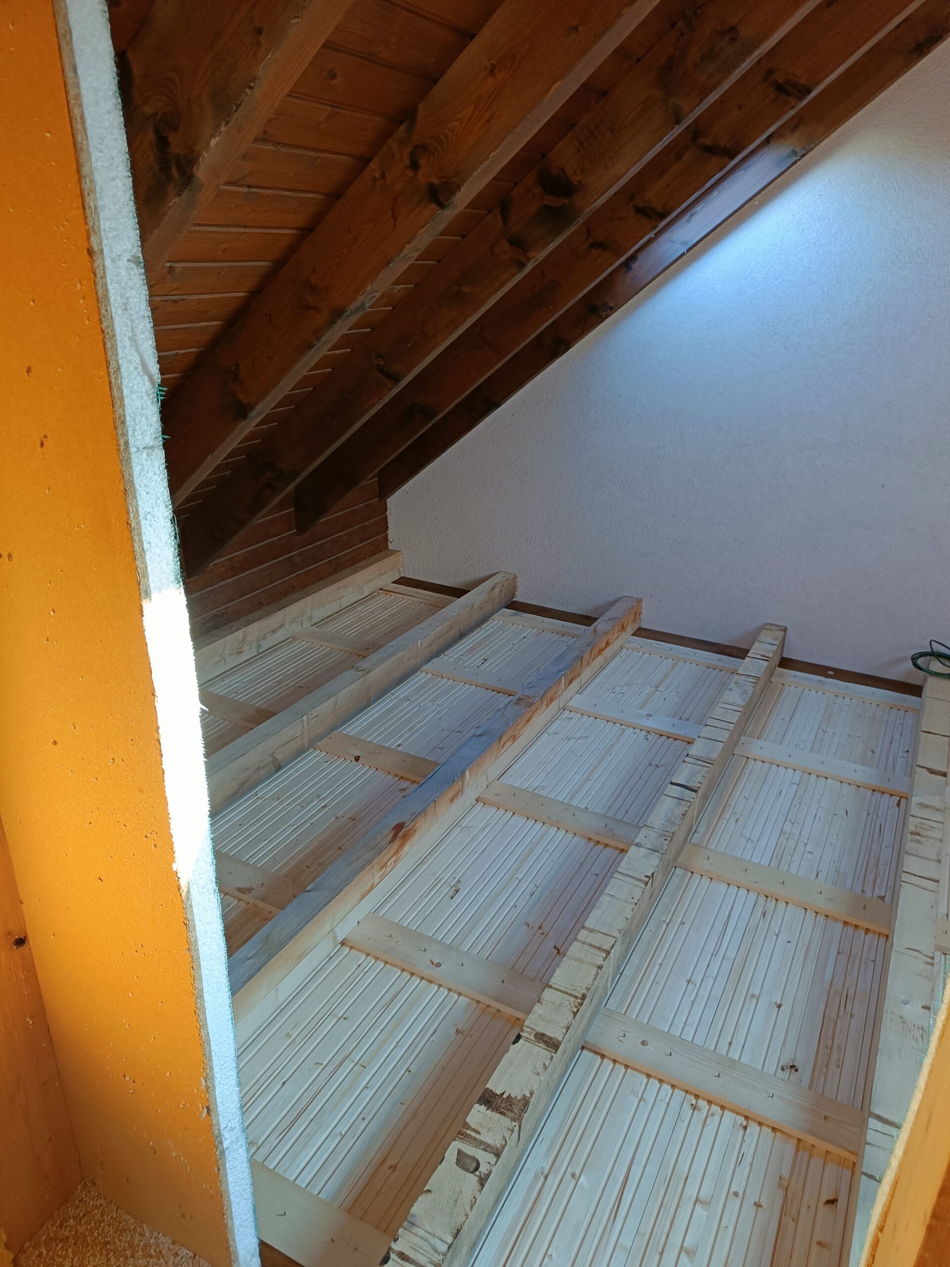 Přístavba stěny s dvoukřídlými dveřmi a izolací.