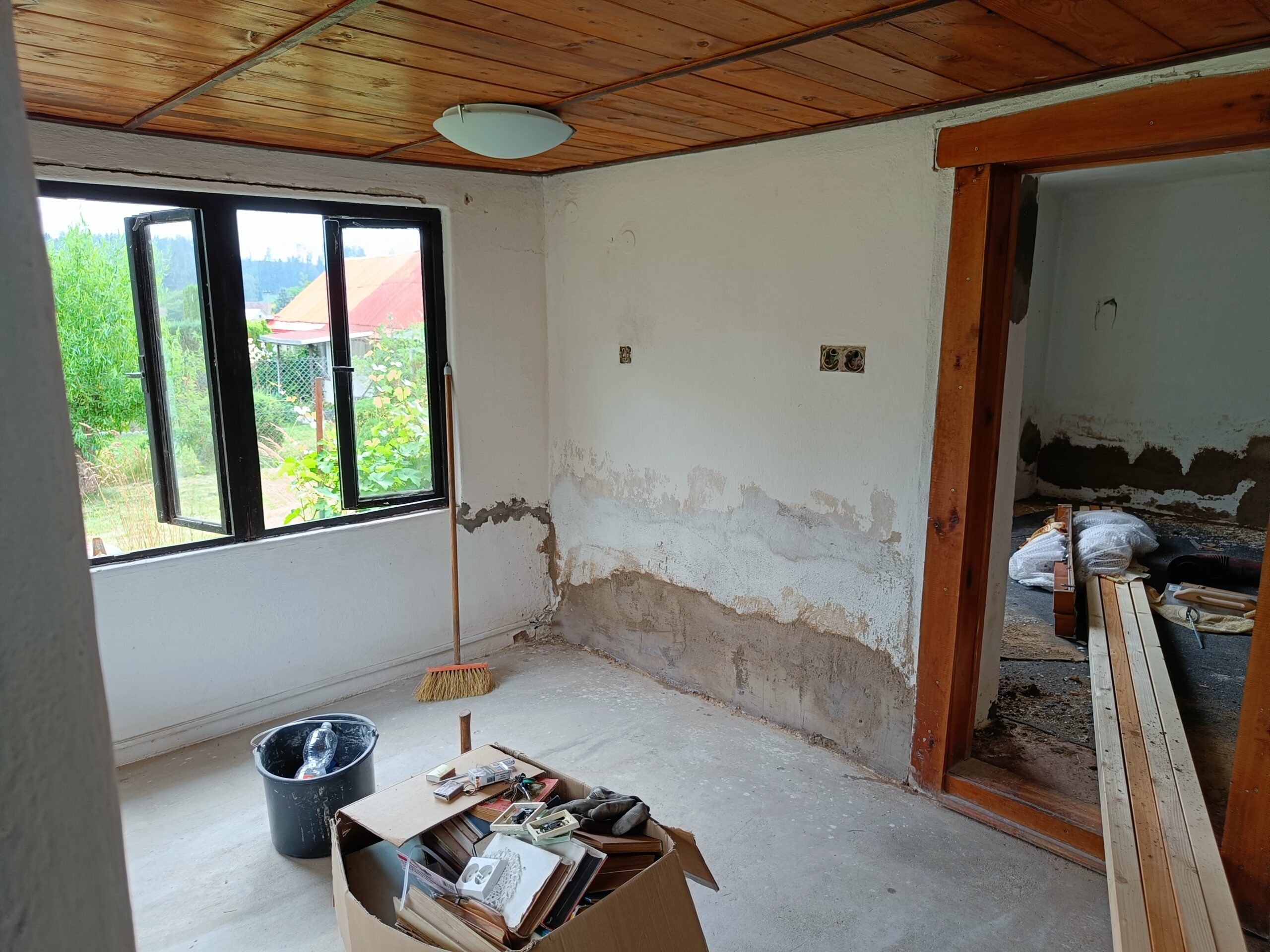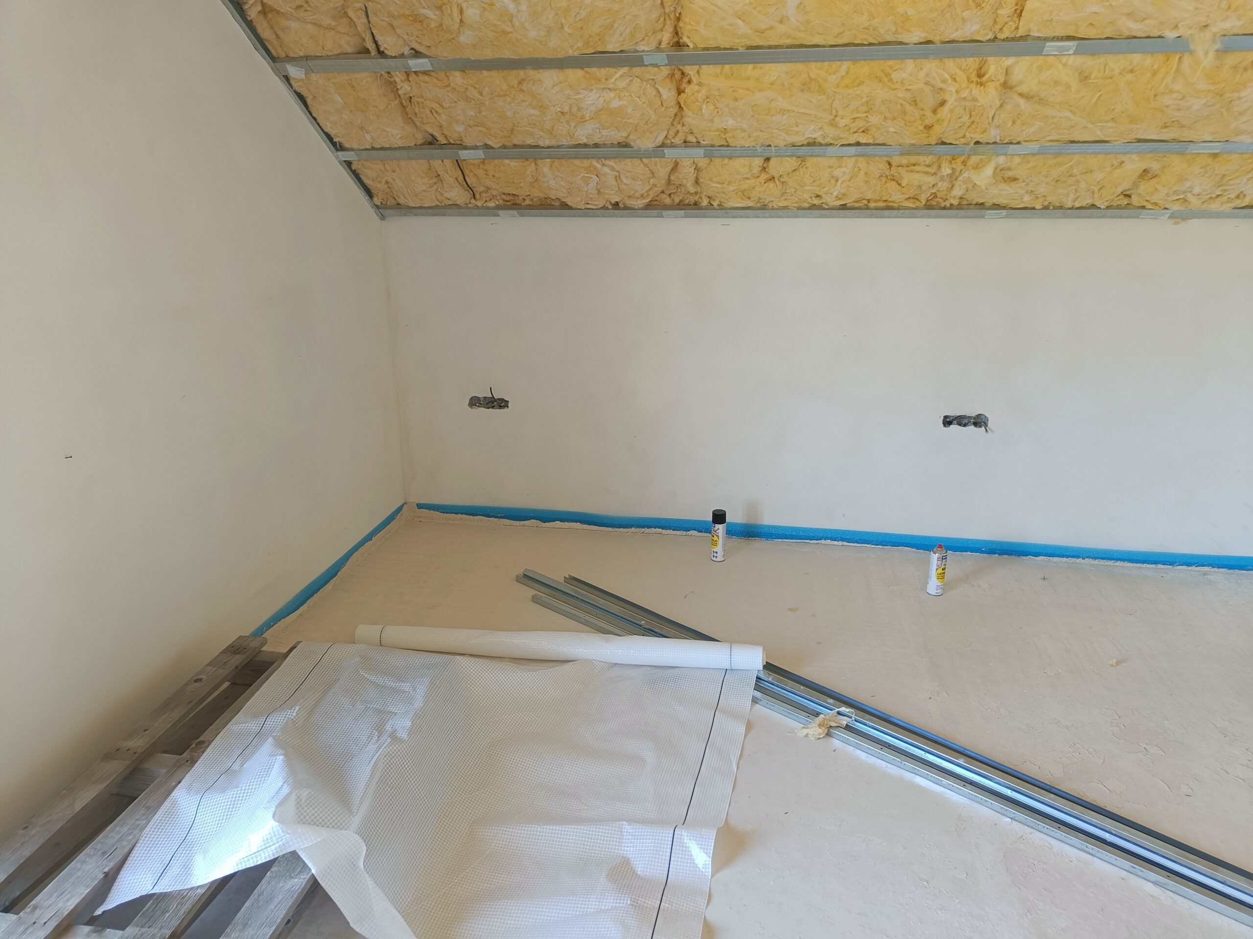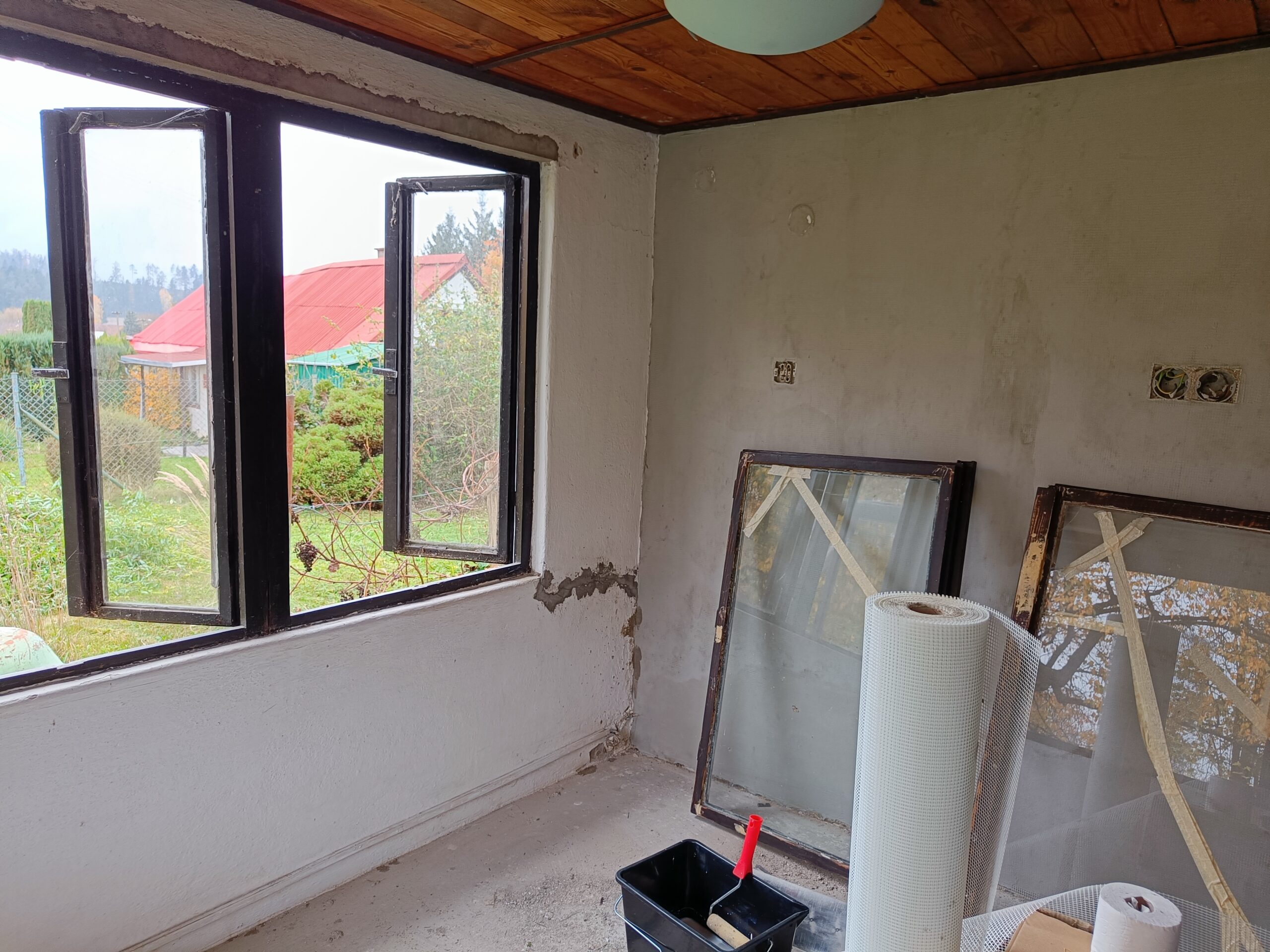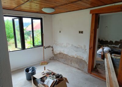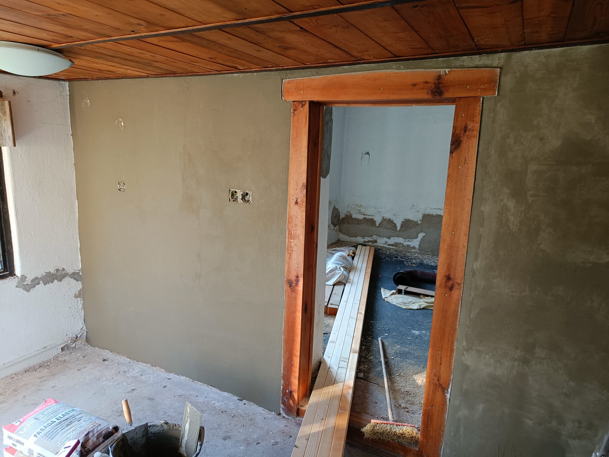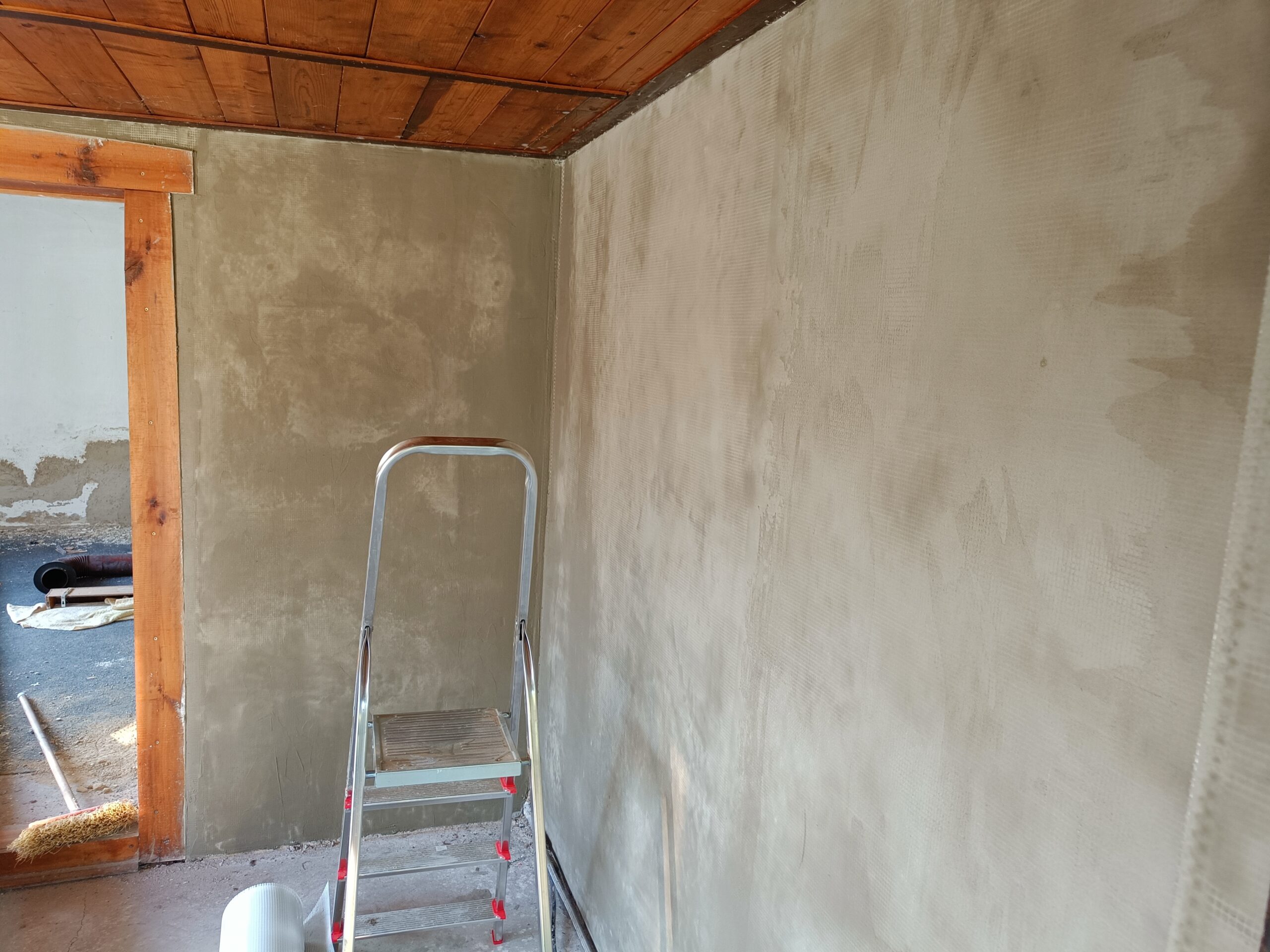 Oprava stěn, natažení perlinky.