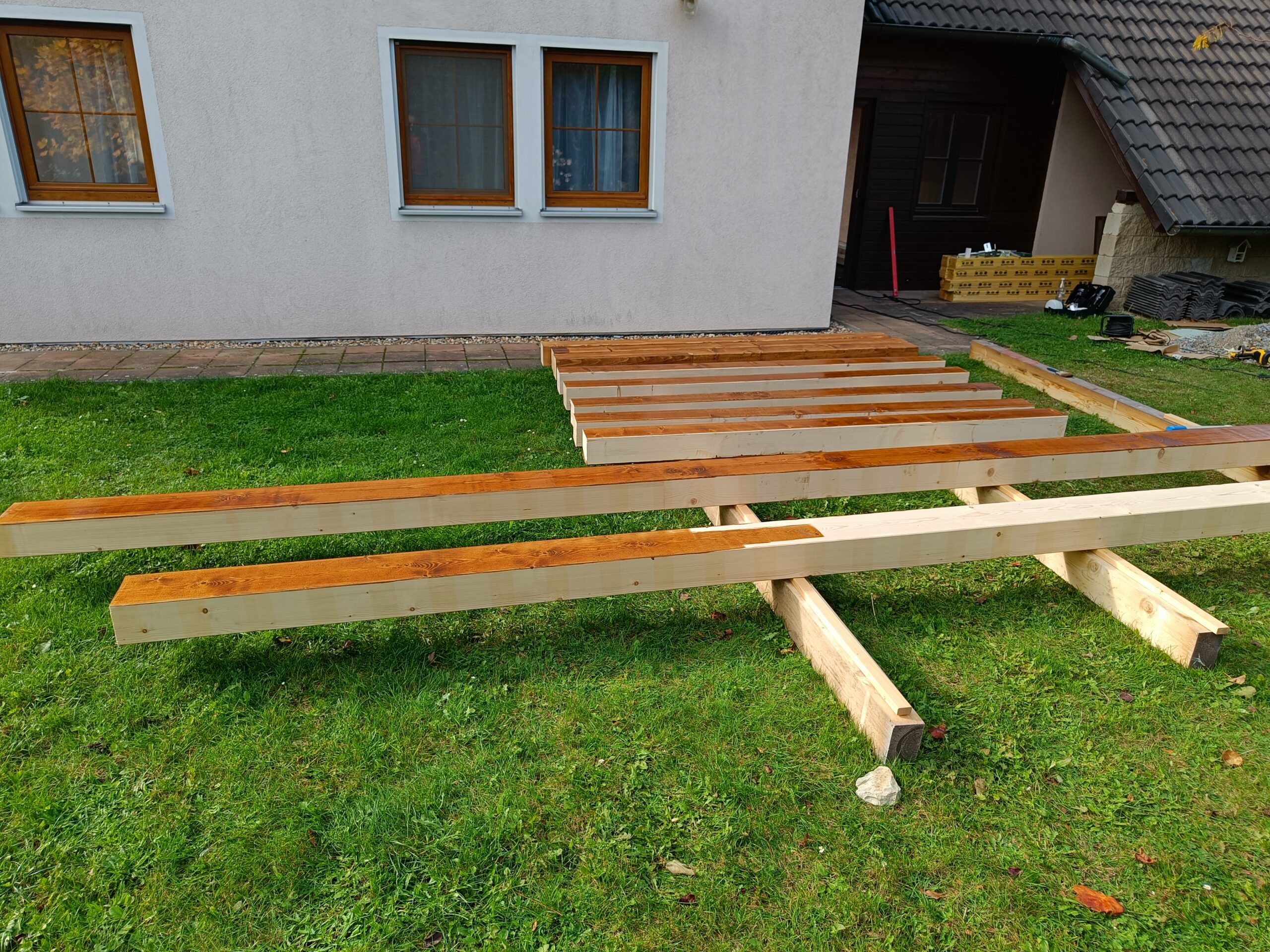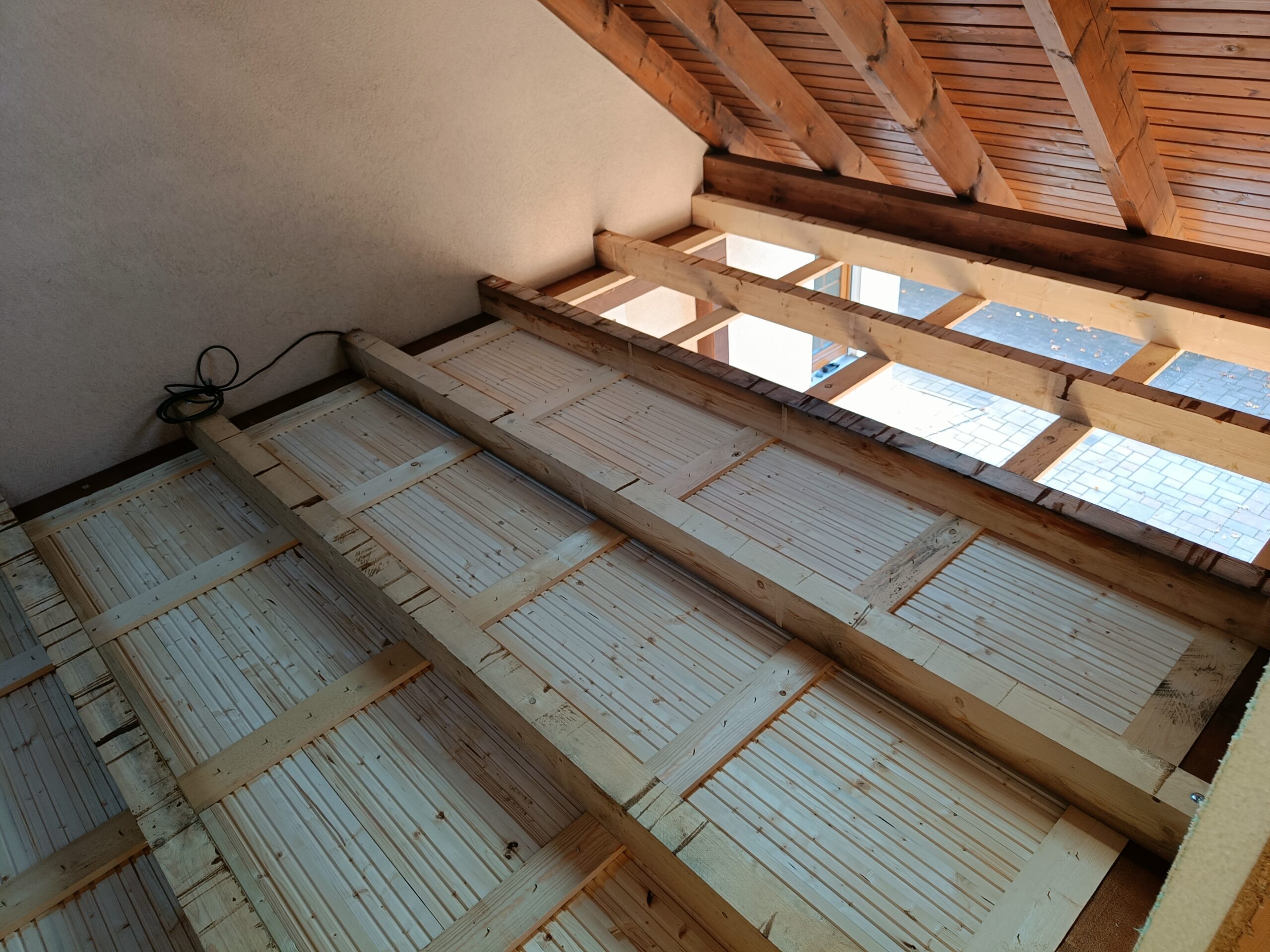 Vytvoření obytného patra v prostoru mezi garáží a domem.